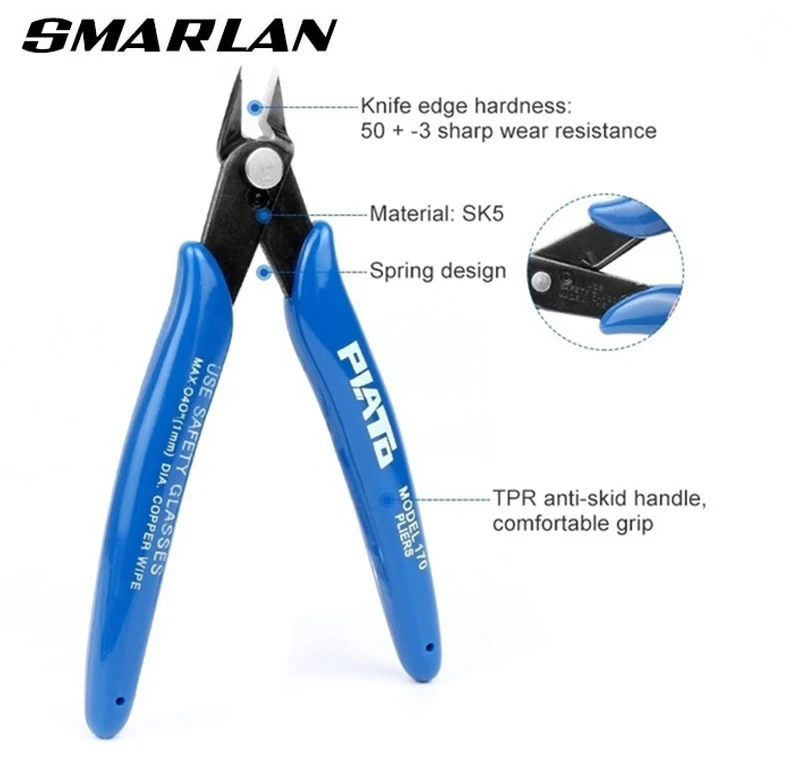 Описание:Цвет: синий светильник,Материал: 50 Стальная Челюсть, противоскользящая резиновая ручкаВ чем разница между 45 сталью и 50 сталью?45 сталь: Углеродное содержание C 0,42-0.50% конструкционной стали, материал относительно мягкий,Обычно используемые в твердости механических частей не требуют. Цена дешевле.(Большинство плоскогубцев используют 45 стали)50 стальной: Имеется ли данный содержание углерода C 0,47-0.55% из конструкционной стали, материал является относительно жесткий, широко используется в ударную нагрузку не требуется и хорошая износостойкость изделиям, прошедшим механическую обработку.Цена дороже. (Наши плоскогубцы используют 55 стали)Особенности:100% качество и абсолютно новый.Пружина для удобства использованияФункция автоматического восстановленияУгол 45 ° используется в плотных пространствахЗакалка из углеродистой сталиСветильник с весом, тонким профилем и удобными в обращении изоляционными захватамиУдобно и удобно в использованииСпециальный подходит для резки проволоки, электронных ножек, обрезки пластиковых изделий, резки небольшой металлической проволоки и так далееИспользуется для ремонта электронной промышленности, обработки ювелирных изделий, изготовления моделей и рыбалки и т. д.