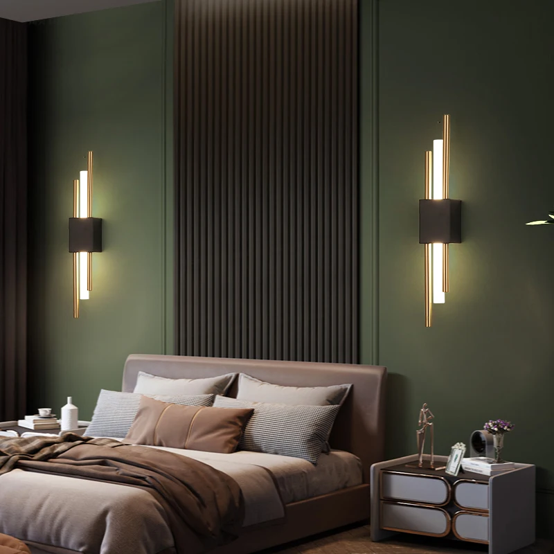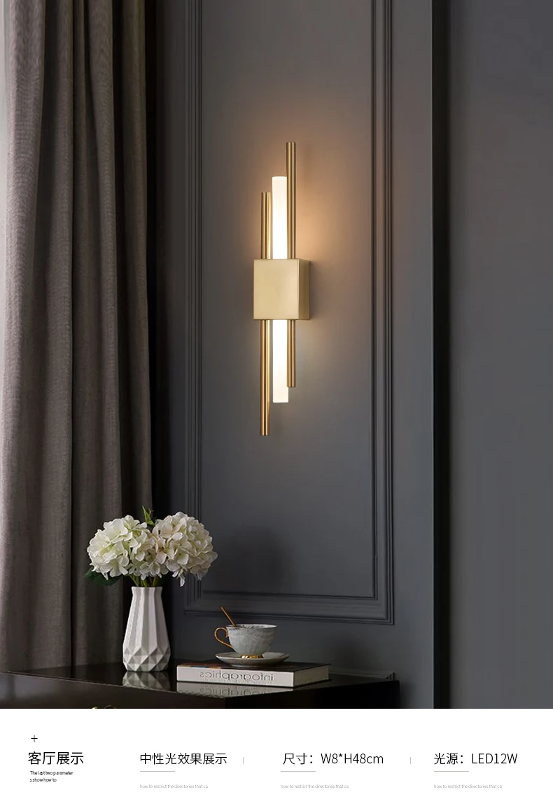 Kobuc современный золотой черный светодиодный настенный светильник 50 см металлическая акриловая труба Настенный бра для гостиной прихожей коридора спальни бра