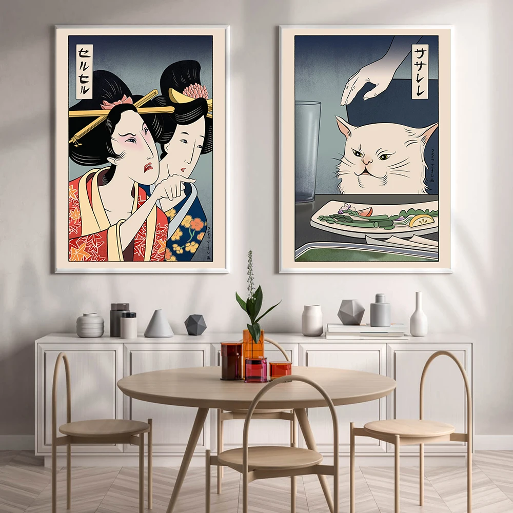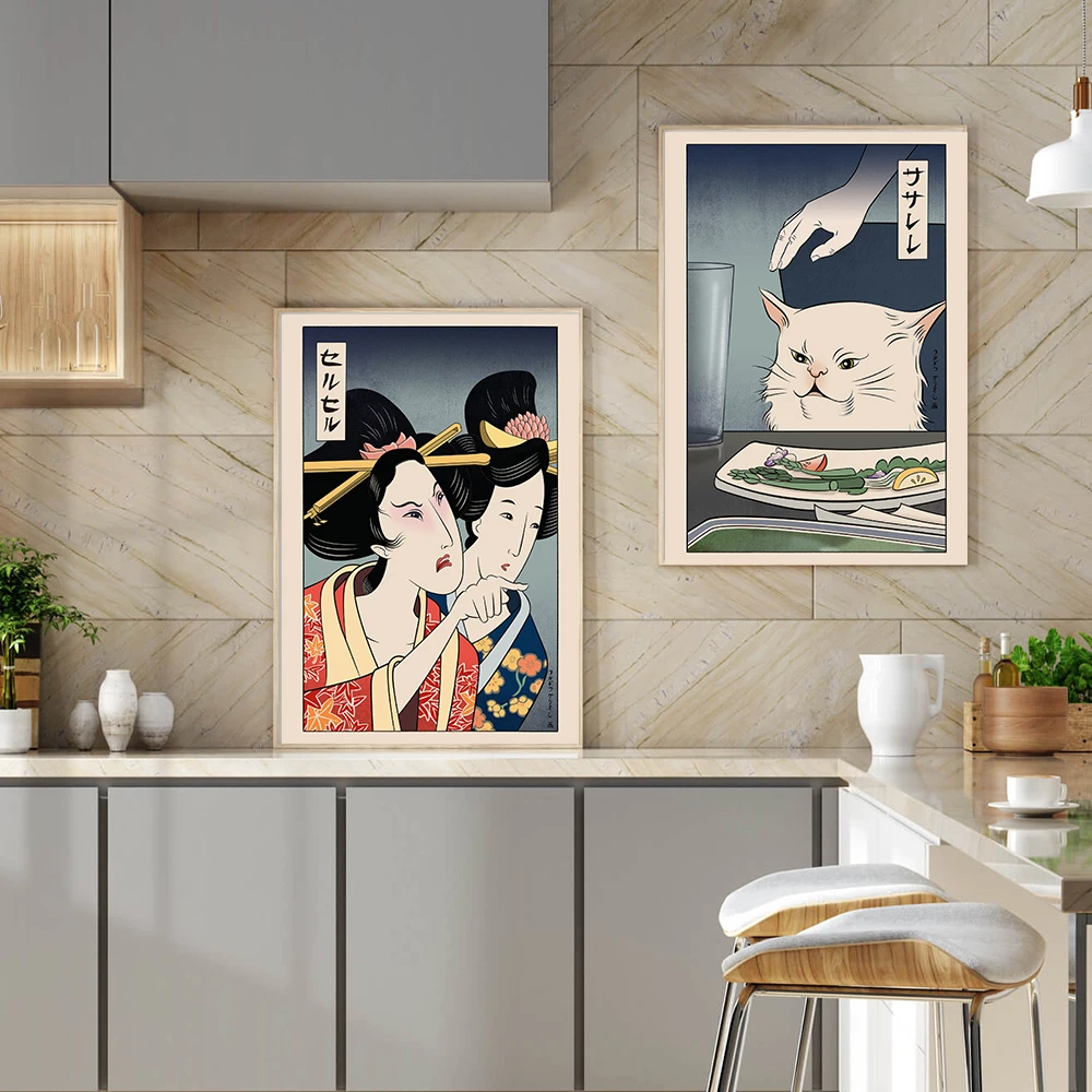 Художественные постеры в ретро стиле укиё-э, женские плакаты с изображением кошек, стены ресторана и отеля, украшенные забавной печатью
