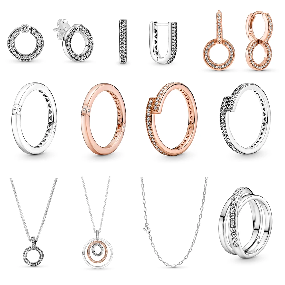 2021 высококачественный кулон и ожерелье из серебра 925 пробы Сверкающее перекрывающее кольцо с двойным кольцом Серьги в подарок