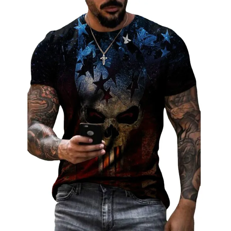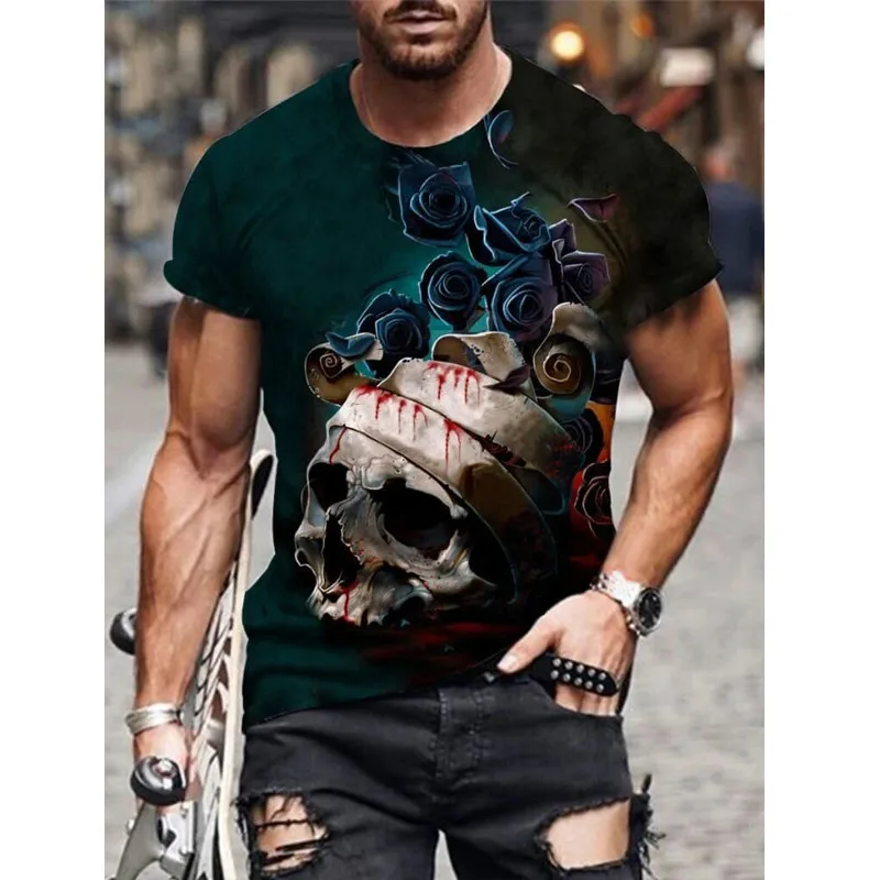 Модная мужская футболка в европейском и американском стиле, одежда с 3D-принтом покерного черепа, супербыстросохнущая свободная футболка, лето 2021
