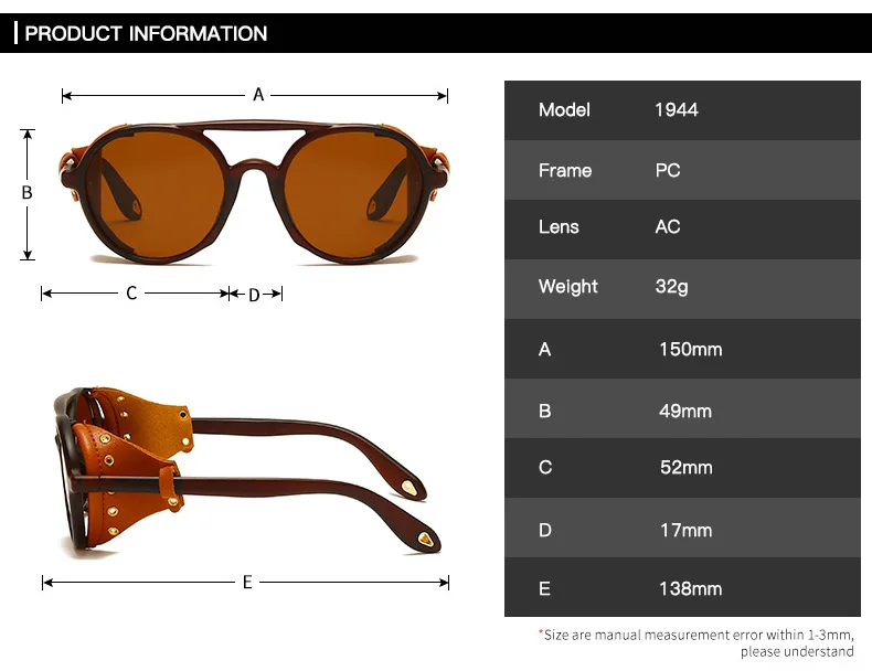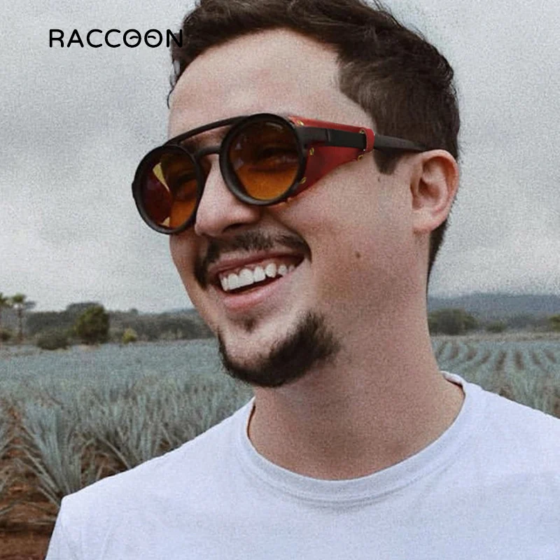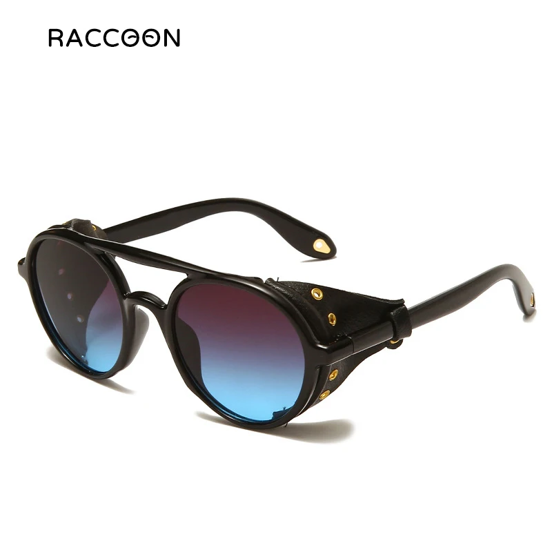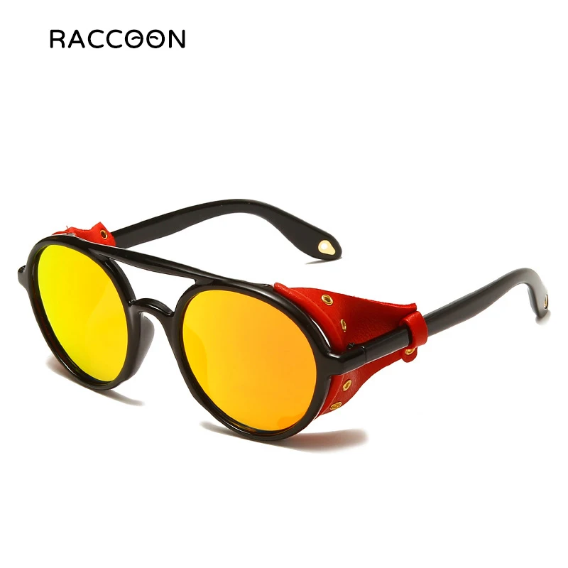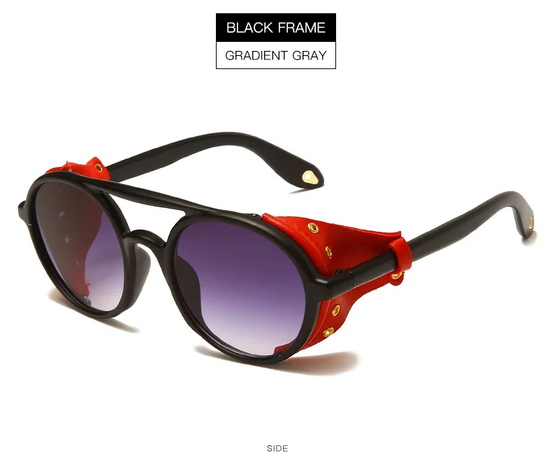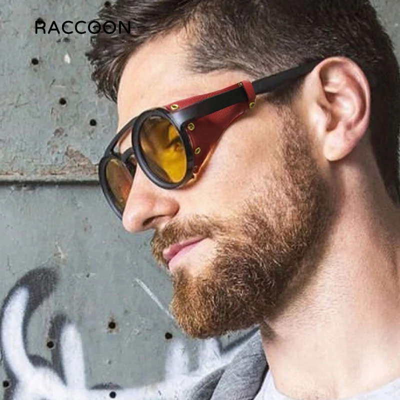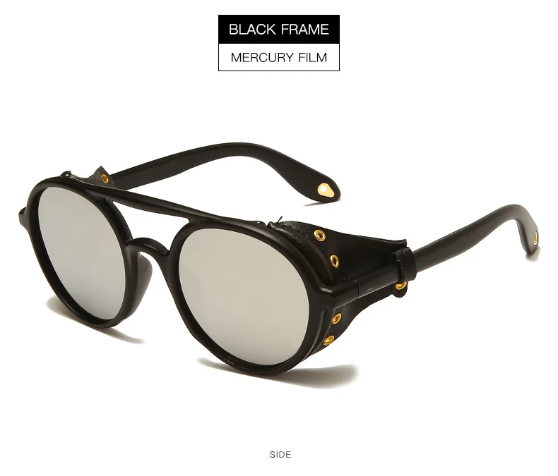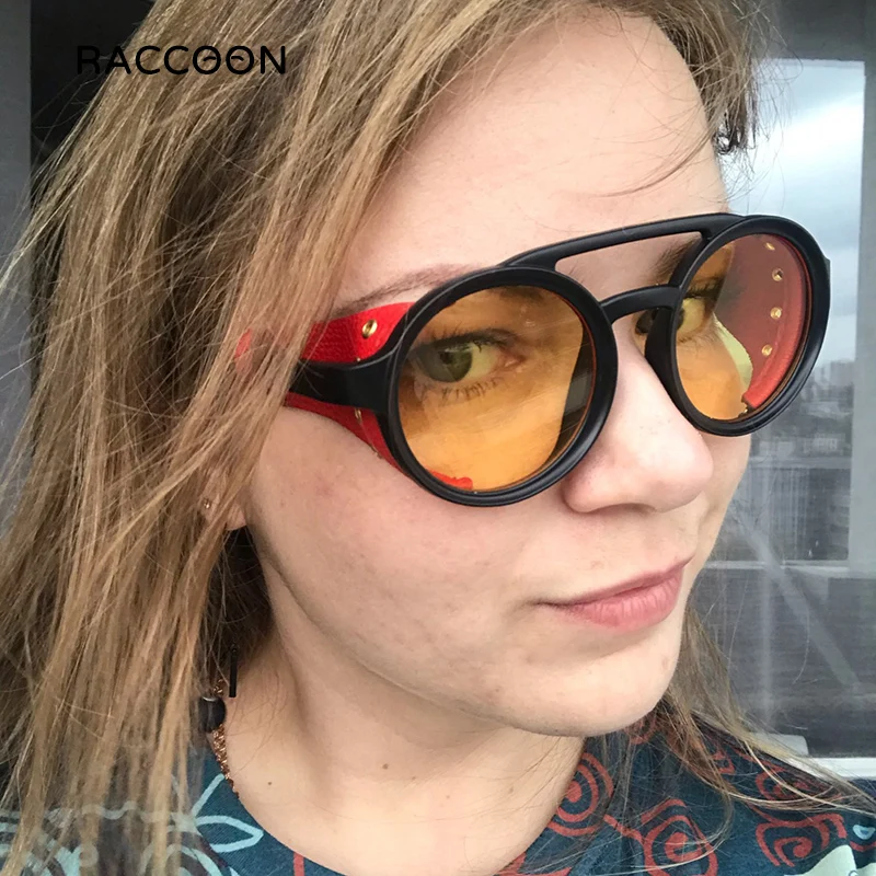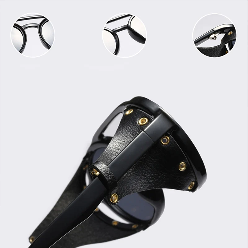 2021 винтажные мужские солнцезащитные очки в стиле стимпанк Женские Ретро оттенки Модные кожаные с боковыми стеклами круглые панковские солнцезащитные очки Uv400