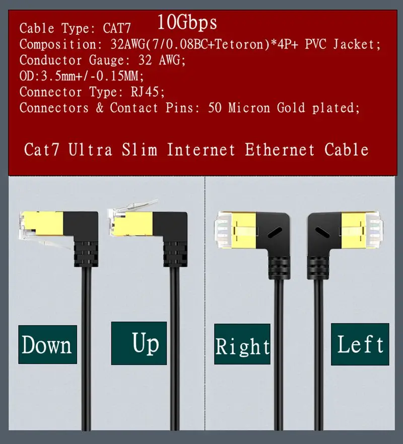 Кабель Ethernet, 10 Гбитс, RJ45, Cat7, сетевой кабель UTP RJ45, совместимый с Cat6 патчкорд, 90 градусов, прямой угол, 0,5 м, 1 м