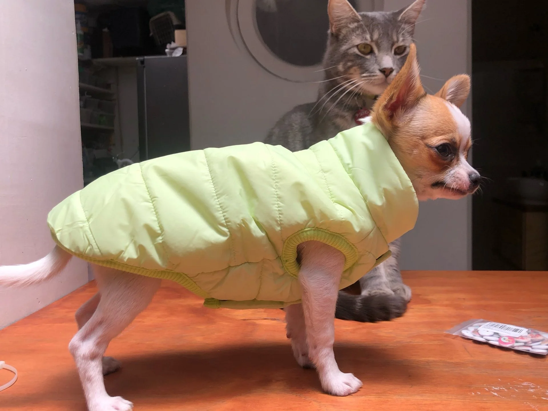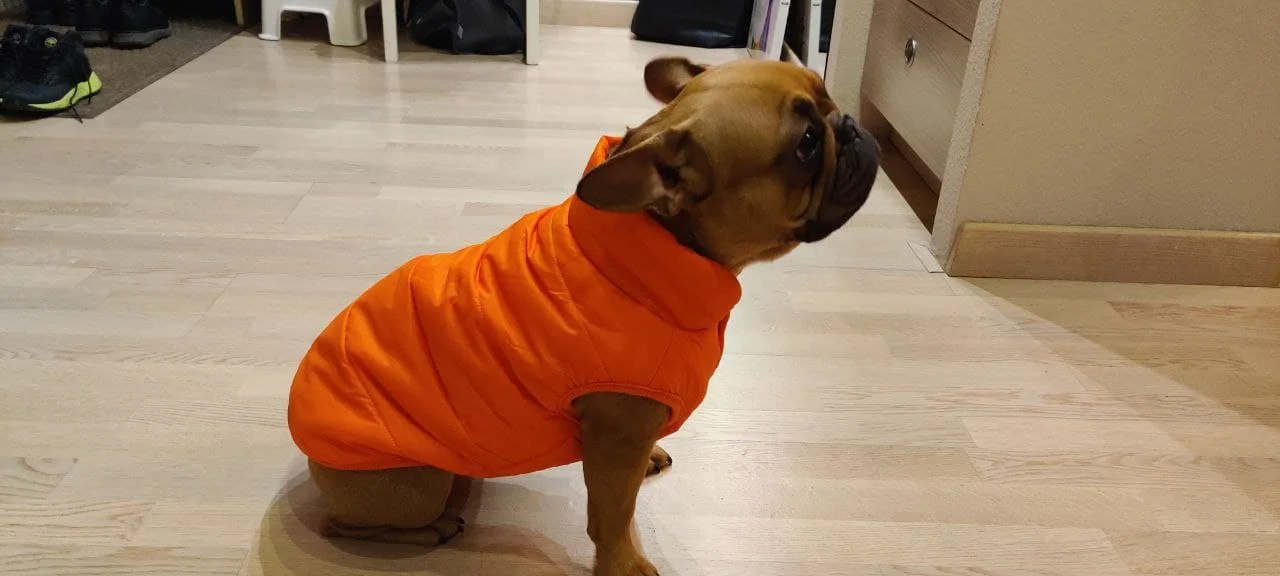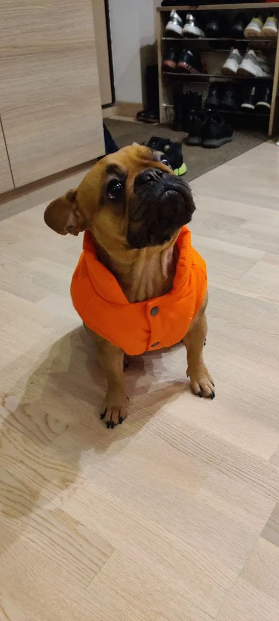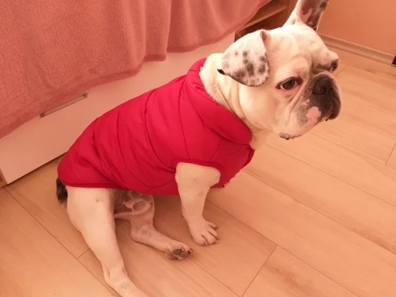 жилетка хорошая, тёплая. у меня ши- тцу мальчик 7.5 кг длина туловища 44см, он стриженный, худой но длинный, поэтому L села хорошо, даже свободно( обычно заказываюXL).