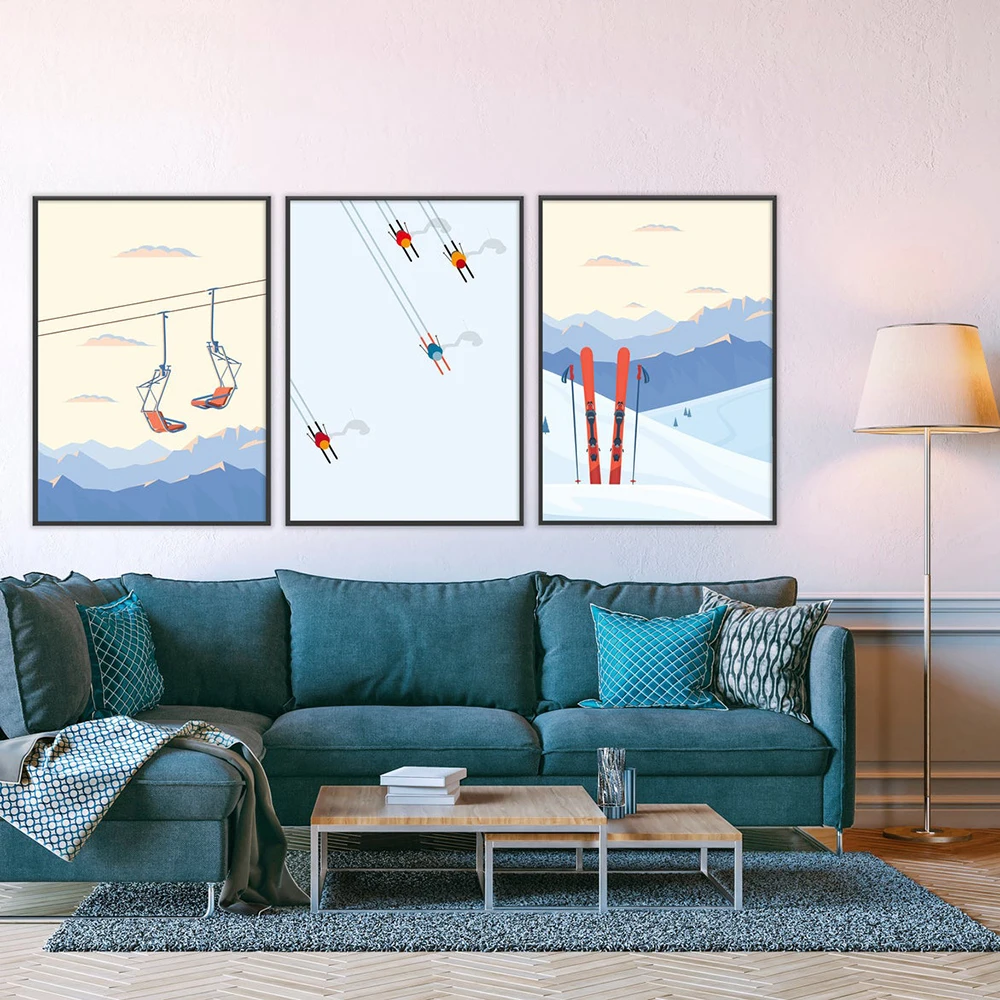 Винтажный художественный плакат с изображением лыжника, Рождественское украшение, скандинавский минималистический принт для гостиной и спальни