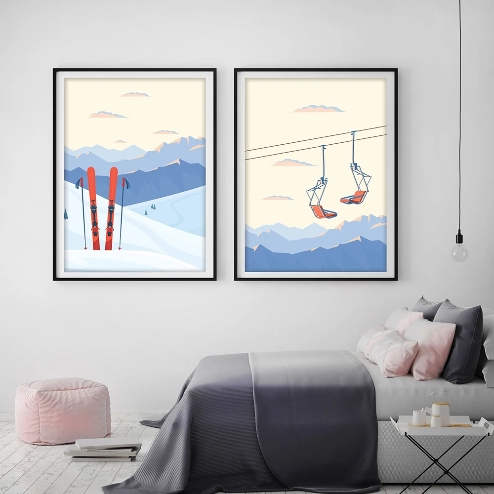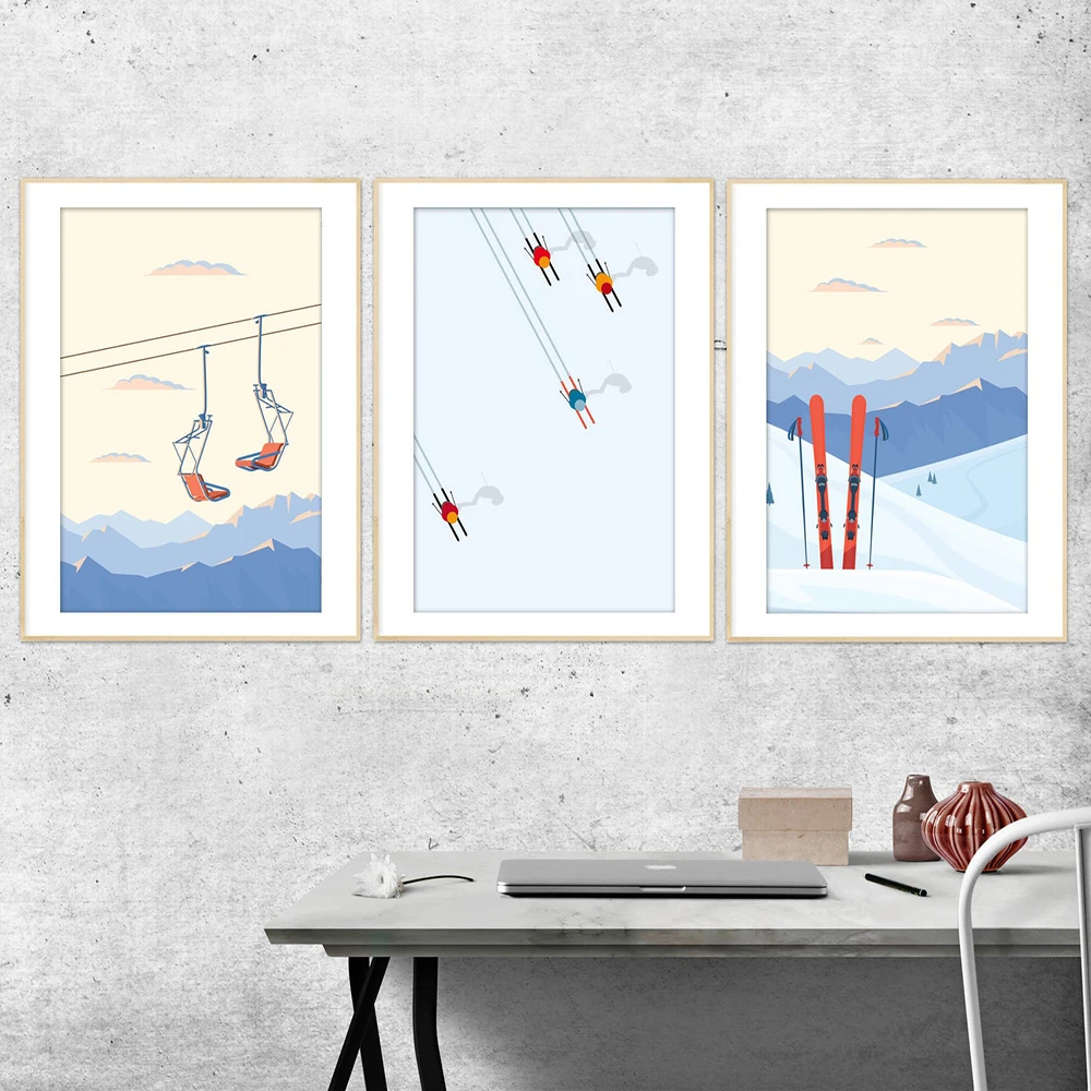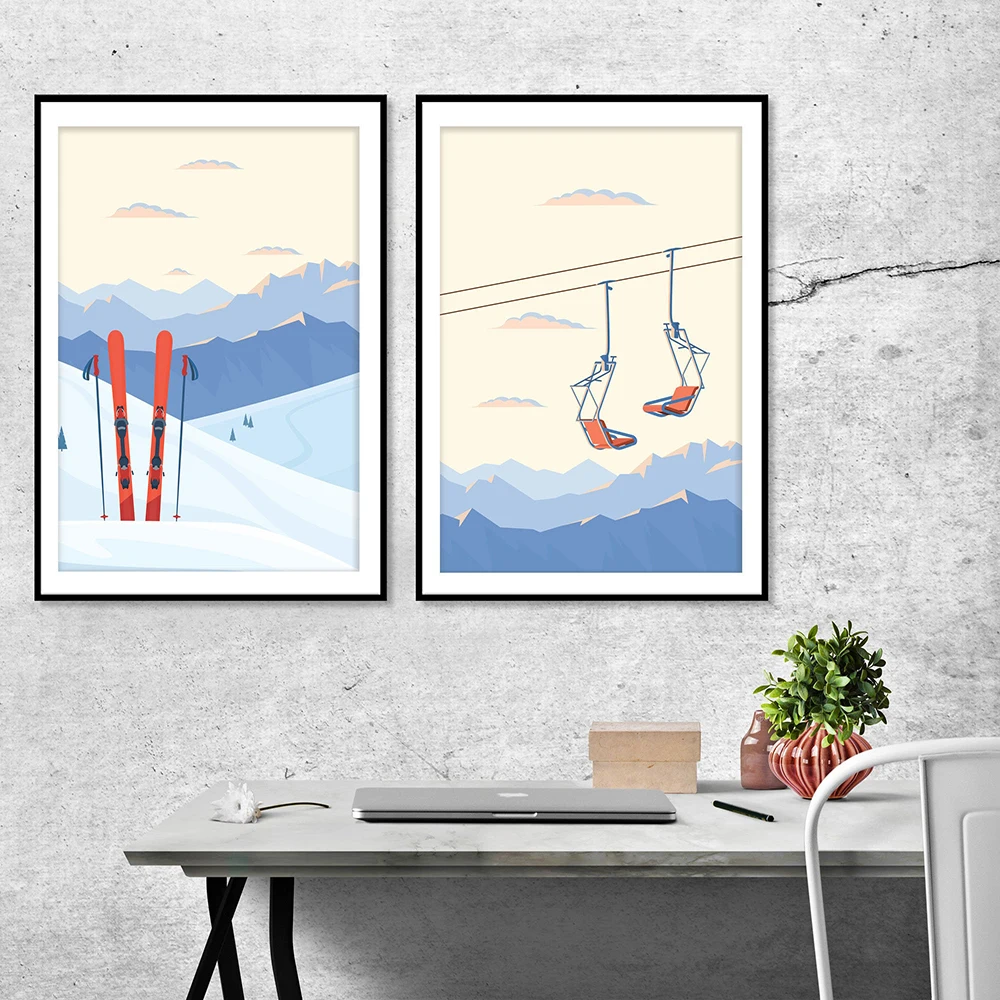 Винтажный подъемник для лыж, искусственная картина, картина, сканер...
