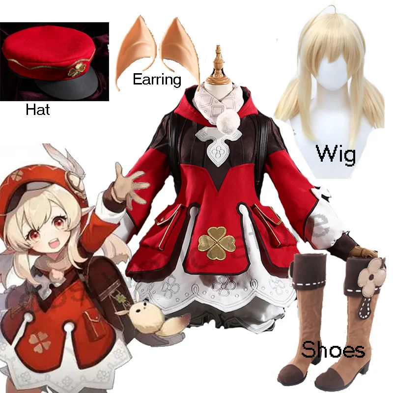 Костюм для косплея Genshin Impact Klee, женское платье, Униформа, наряд для Хэллоуина, косплей, парик, туфли, рюкзак, костюм
