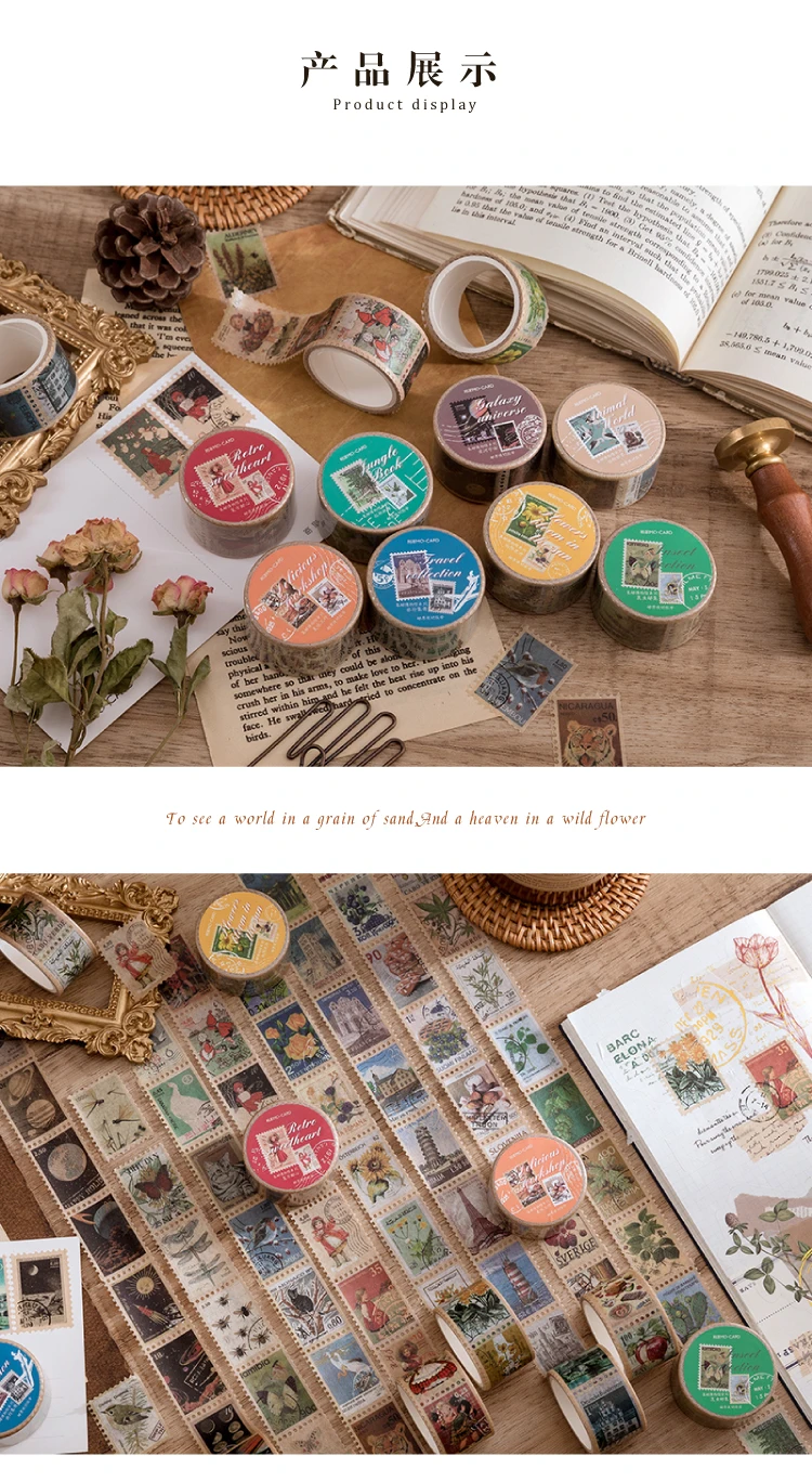 Винтажные штампы 5 м, Васи-лента, наклейки с растениями, туристическая архитектура, ретро, бумажники, скрапбукинг, материал декоративная клейкая лента