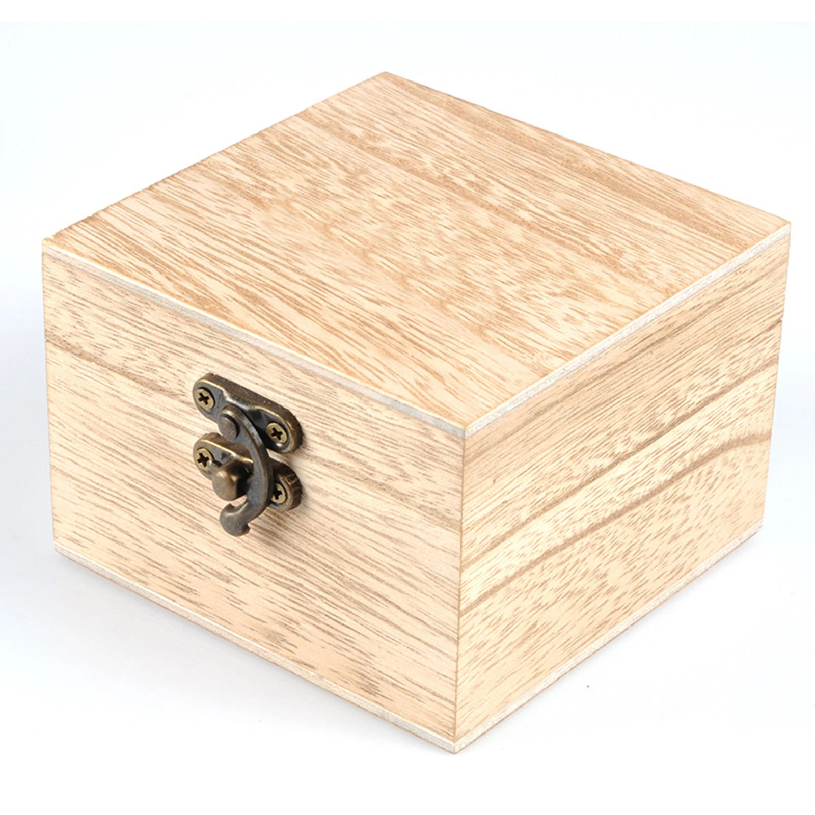 -Неокрашенная древесина шкатулка для украшений/чехол для хранения часов, вы можете рисовать так, как хотите.-Подходит для хранения ожерелий, браслетов, серег, часов, запонок, зажимов для галстука, монет и других крошечных предметов.-Размер: прибл. 95x95x63 мм/3,7x3,7x2,5 дюйма-Отличный подарок для мамы, девушки, жены, дочери, коллеги и друга.-Ящик для хранения часов из натурального дерева с 1 сеткой.