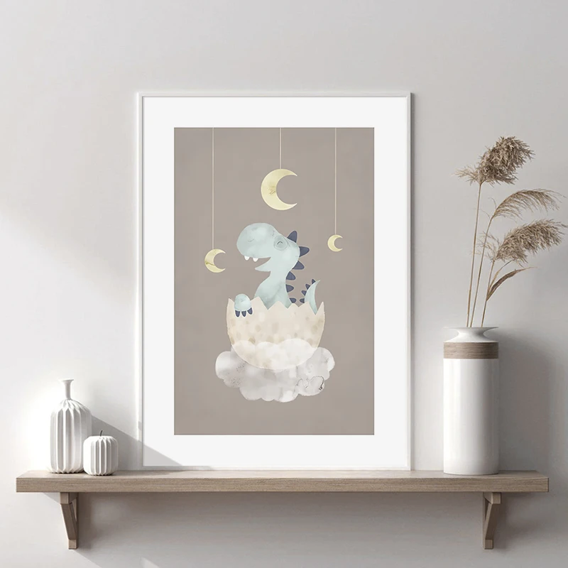 Милый мультяшный динозавр, БУКВЕННОЕ слово, холст, плакат для детск...
