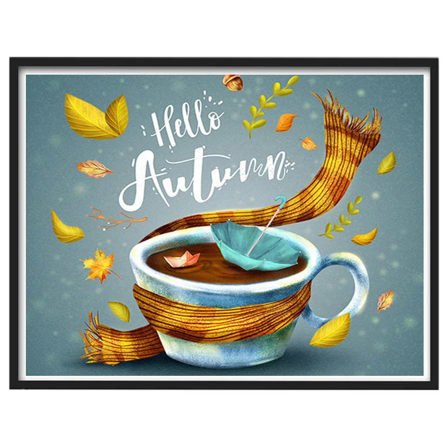 Алмазная вышивка кофейные осенние листья Diy алмазная живопись полная квадратная круглая Стразы картина, Алмазная мозаика