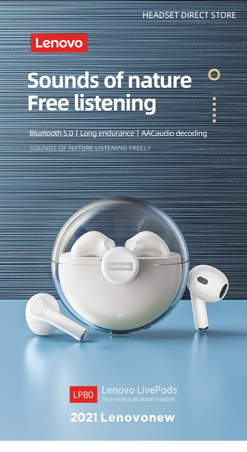 Беспроводные Bluetooth-наушники Lenovo LP80 LP6 LP40 LP1s, водонепроницаемые