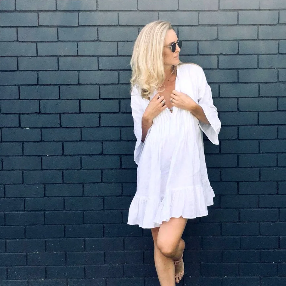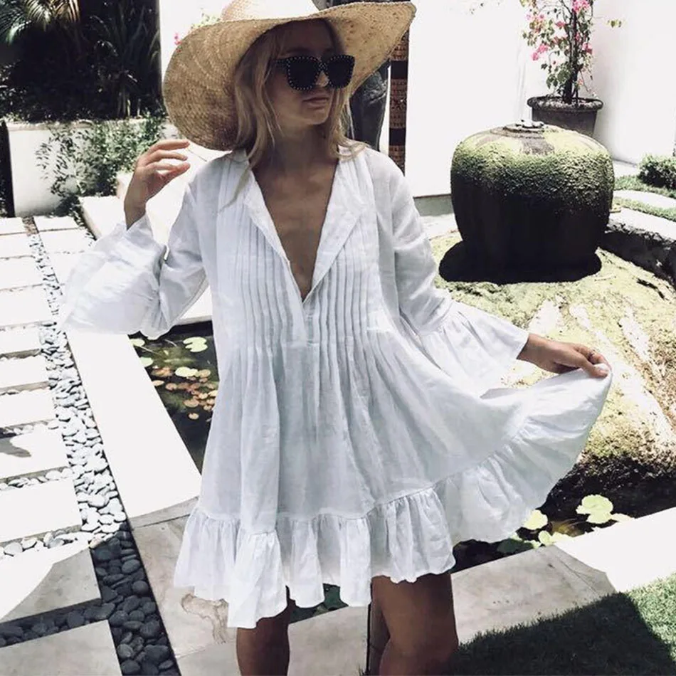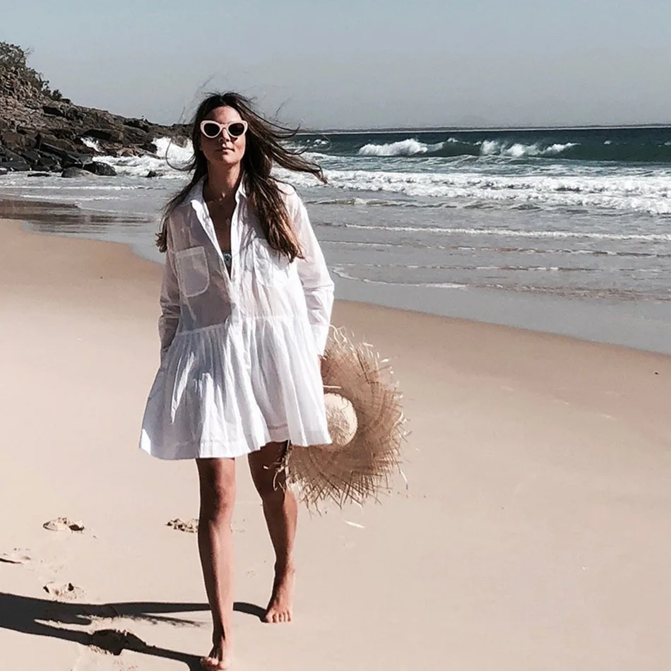 Сексуальная накидка на бикини, длинная белая туника, повседневное л...