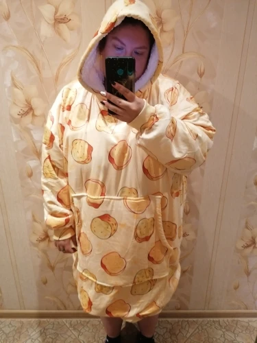 Очень классная толстовка. Теплая,мягкая ,можно вместо пледа использовать). Точно не замерзните в ней,советую