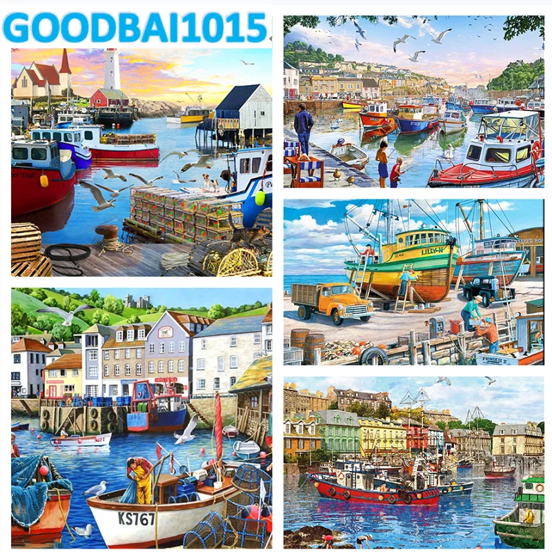 Алмазная 5D Вышивка Лодка, Набор для вышивки крестиком сделай сам, мозаика, украшение для дома