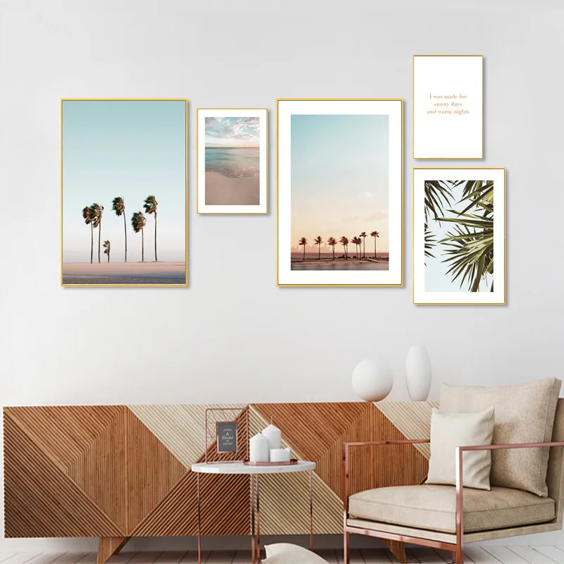 Фотообои с изображением листьев пляжа, пейзажа, холст с рисунком пальмы, плакат, настенные картины для гостиной, домашний декор TB227