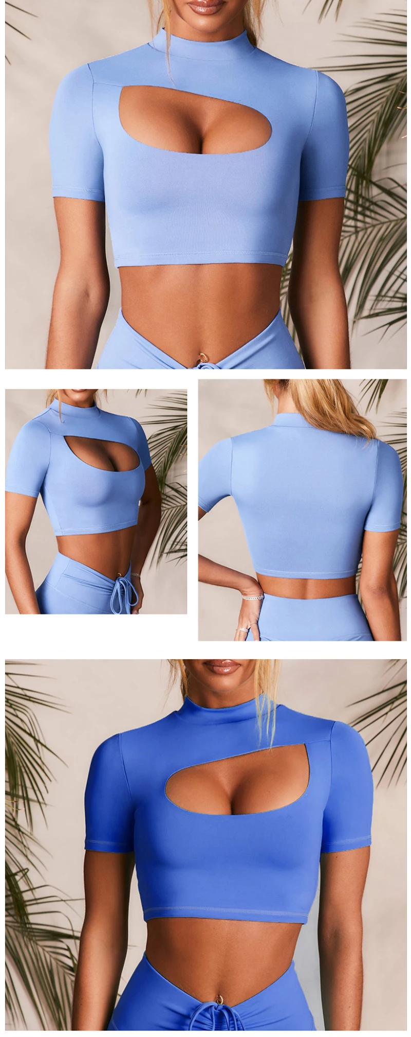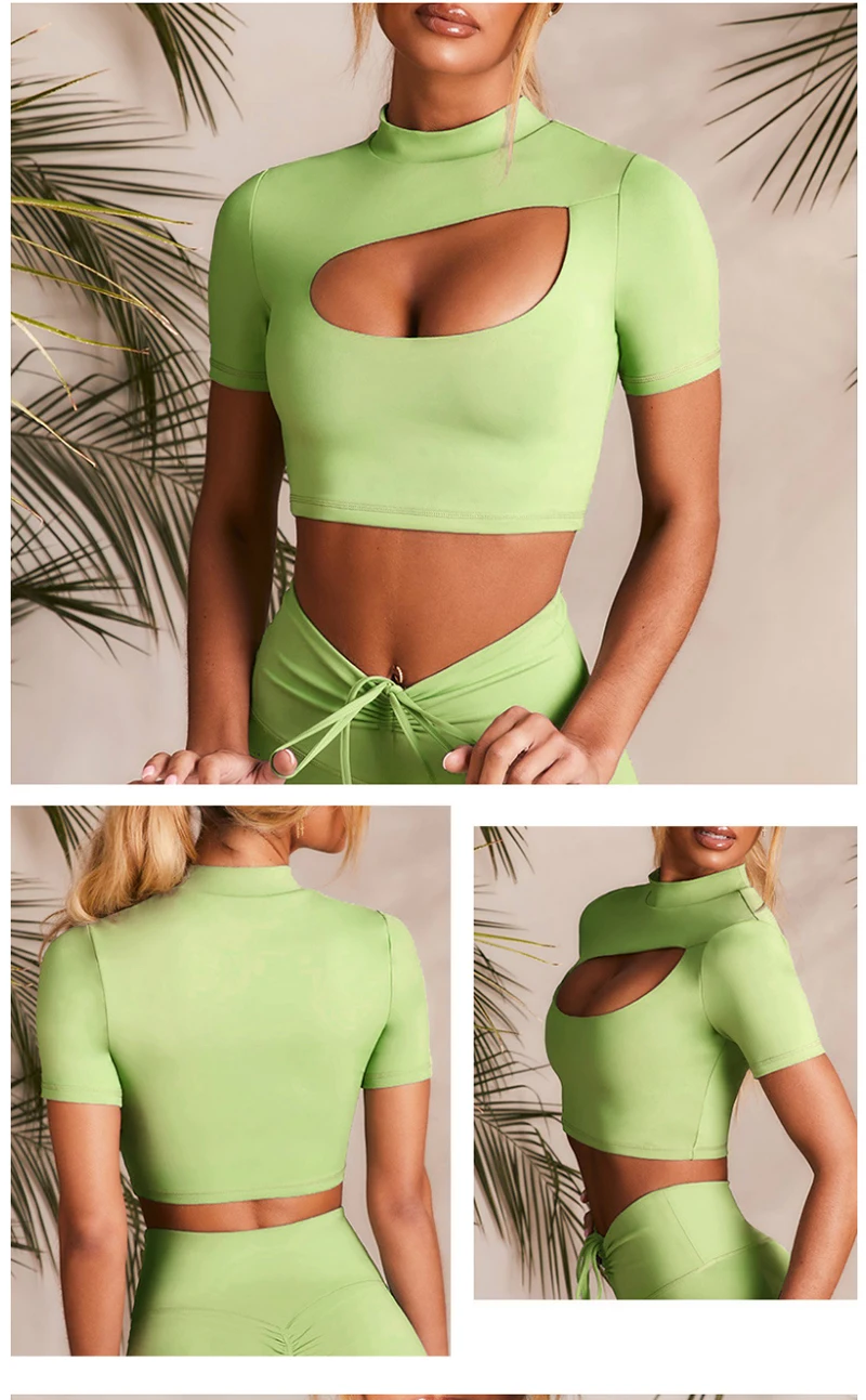 Женские Бесшовные комплекты для йоги с коротким рукавом, Спортивные...