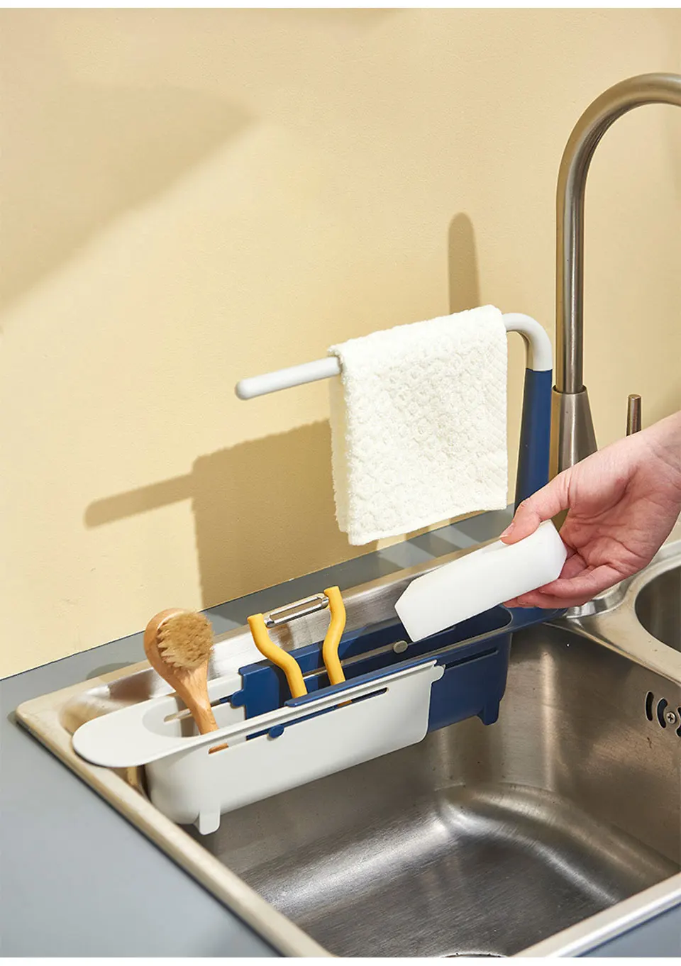 Телескопическая Подставка под раковину, стеллаж для хранения, подставка под губку, регулируемый держатель для ванной комнаты для домашней кухни