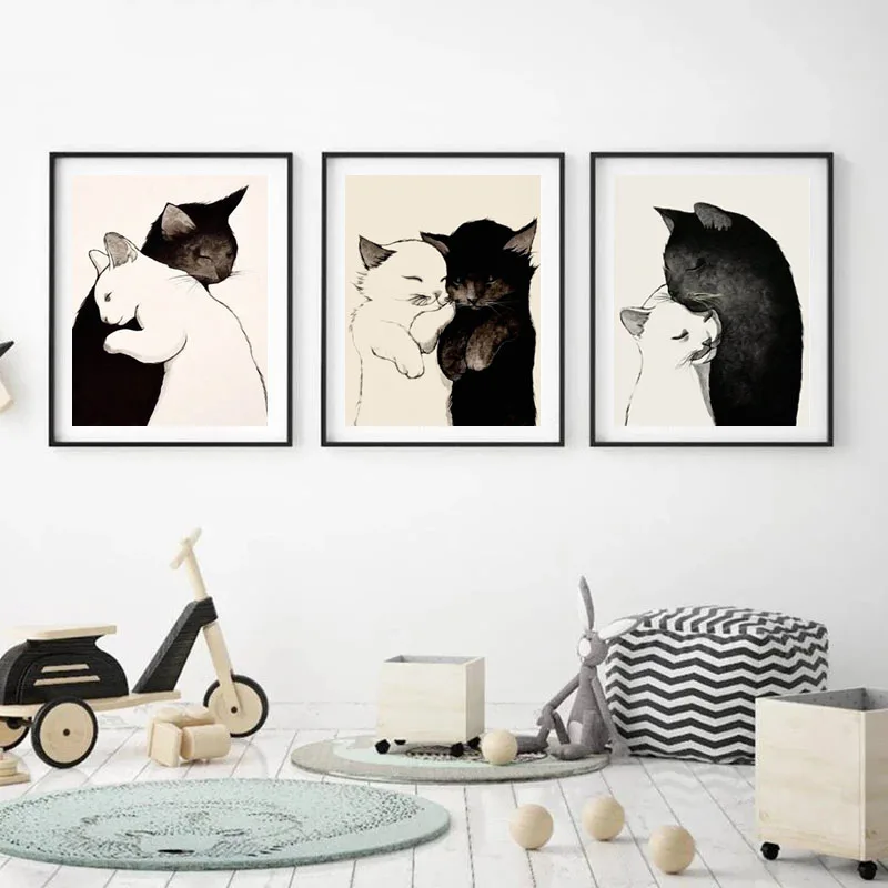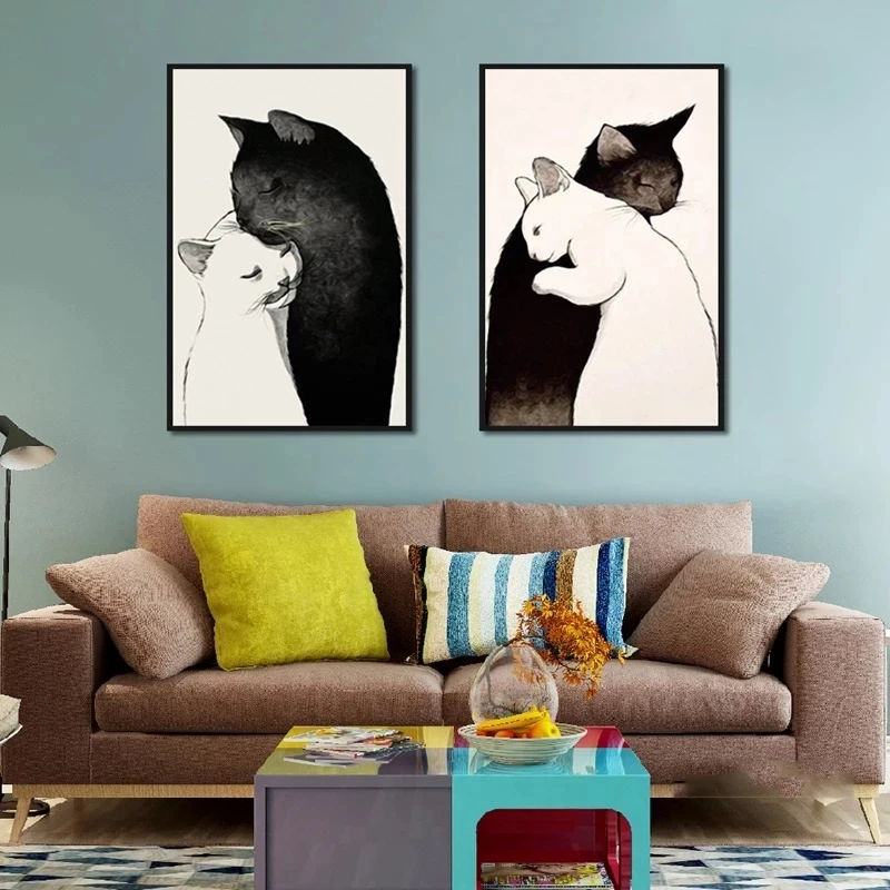 Животные милый черный белый кот настенная живопись холст скандинавские плакаты и принты картины гостиная спальня современный домашний декор