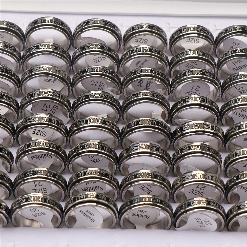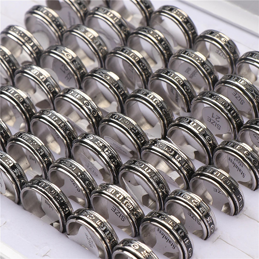 Вращающийся Спиннер из нержавеющей стали, 36 шт.лот, 6 слов, правда, серебряные кольца, ювелирные изделия для женщин и мужчин, смешанные стили, оптовая продажа