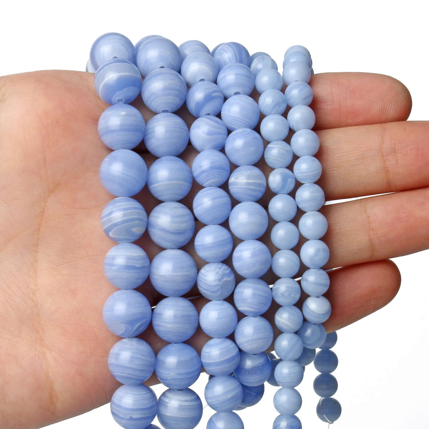 Бусины из натурального камня, голубые кружевные Агаты, круглые бусины россыпью для изготовления ювелирных изделий, бусины для рукоделия, подвески для браслетов 6810 мм