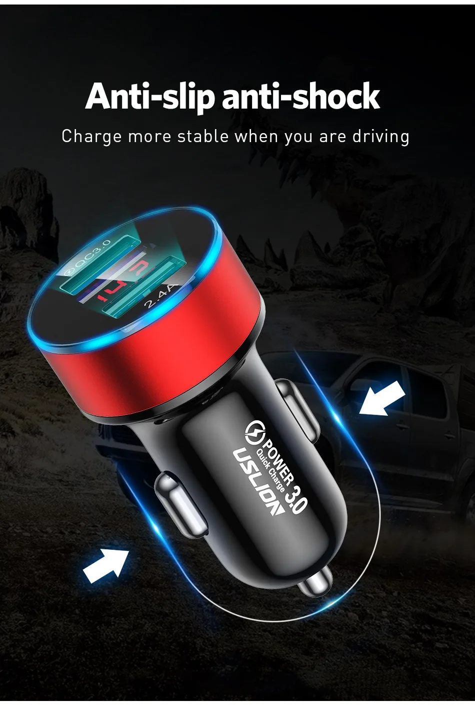 Автомобильное зарядное устройство, 2USB, быстрая зарядка 3,0, автомобильное зарядное устройство, быстрая зарядка для iPhone 12, 11, Samsung, Huawei, Xiaomi Мобильный телефон