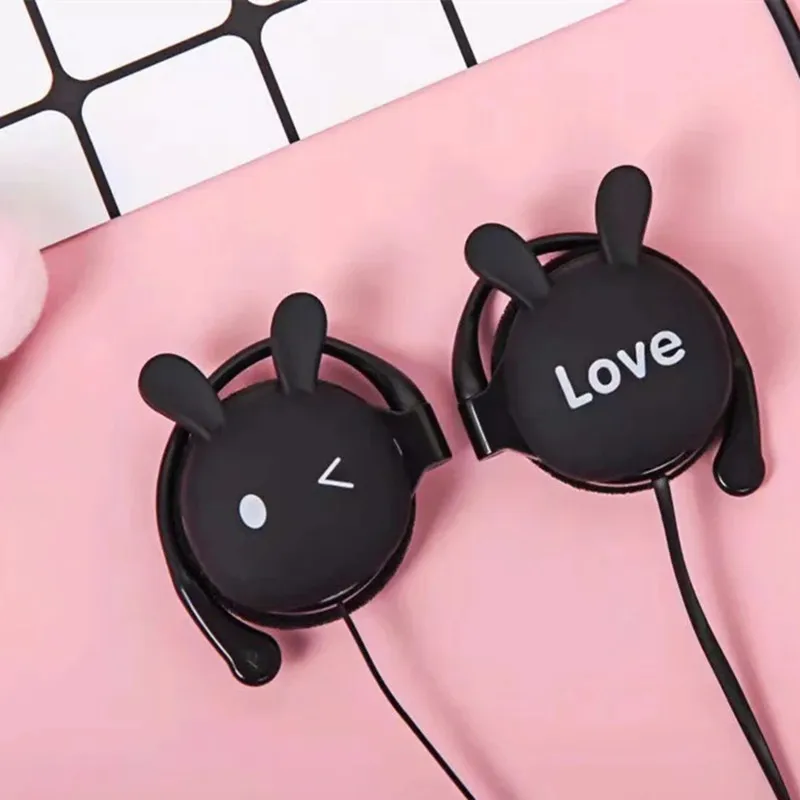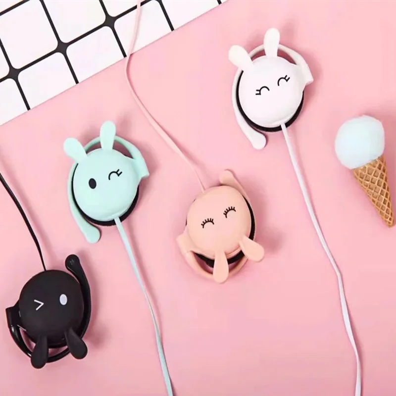 3,5 мм мягкий мультфильм кролик ушной крючок проводные наушники спо...