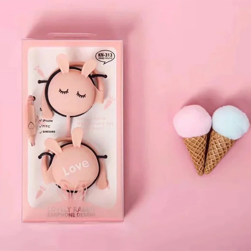 Наушники-вкладыши 3,5 мм с милым мультяшным милым Кроликом, спортивные наушники, музыкальные наушники со встроенным микрофоном для телефонов Android IOS