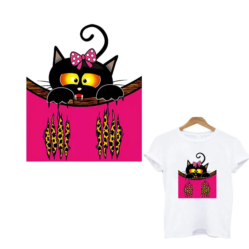 Наклейки для одежды с черными кошками, термоклейкие наклейки для одежды, джинсов, платьев, рюкзаков