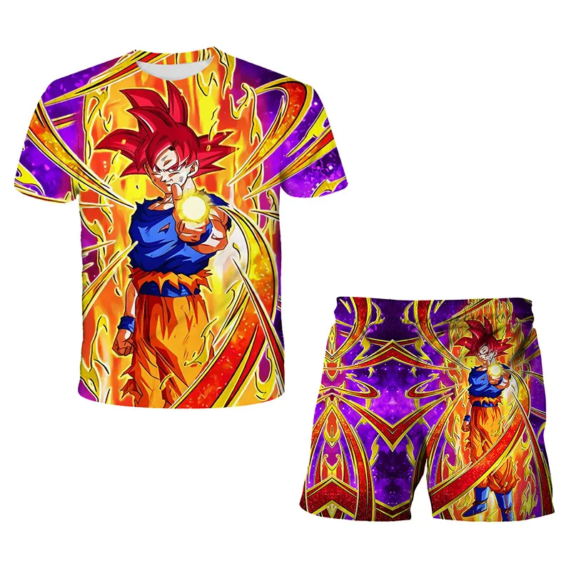 Пляжные шорты, футболки и шорты Вегета, комплект из футболки с аним...