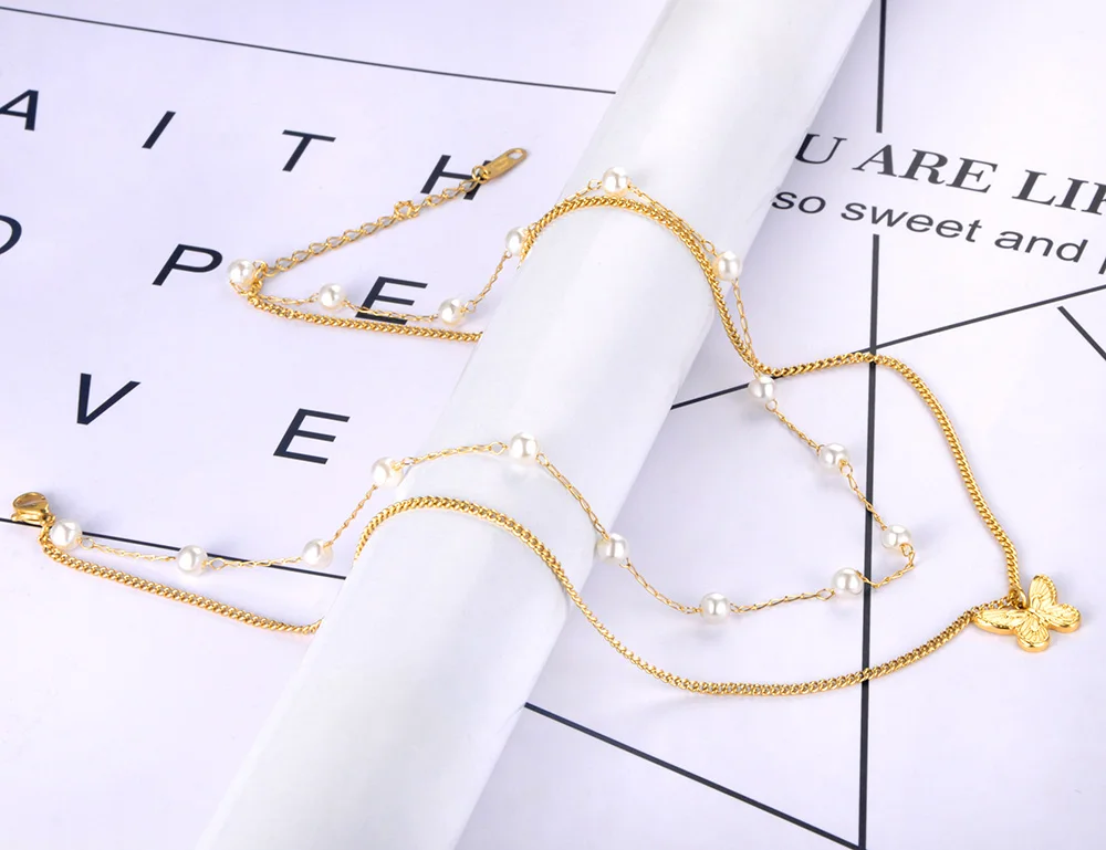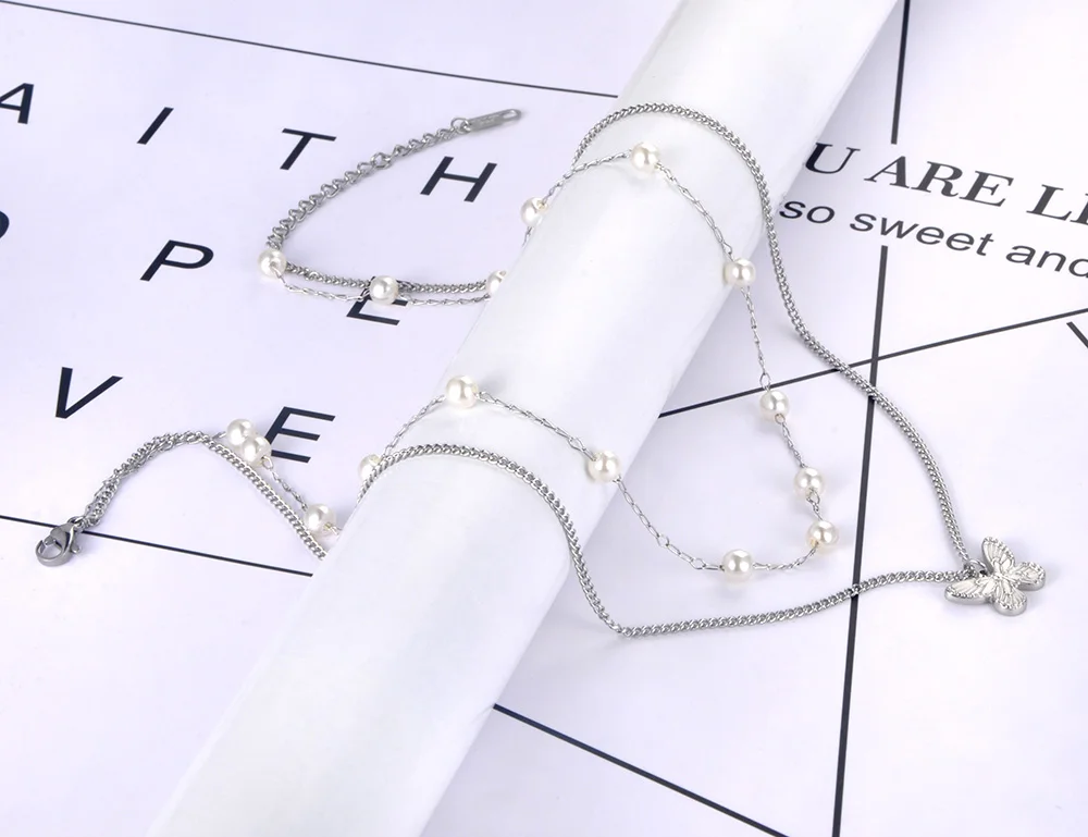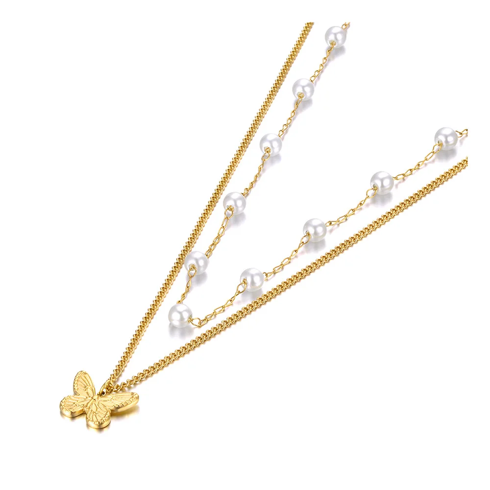 Женское Двухслойное ожерелье Lokaer, чокер из нержавеющей стали в богемном стиле с подвеской-бабочкой, колье-цепочка для женщин, N21141