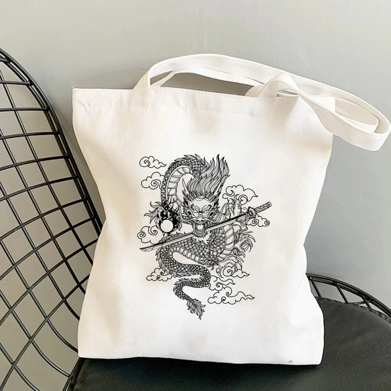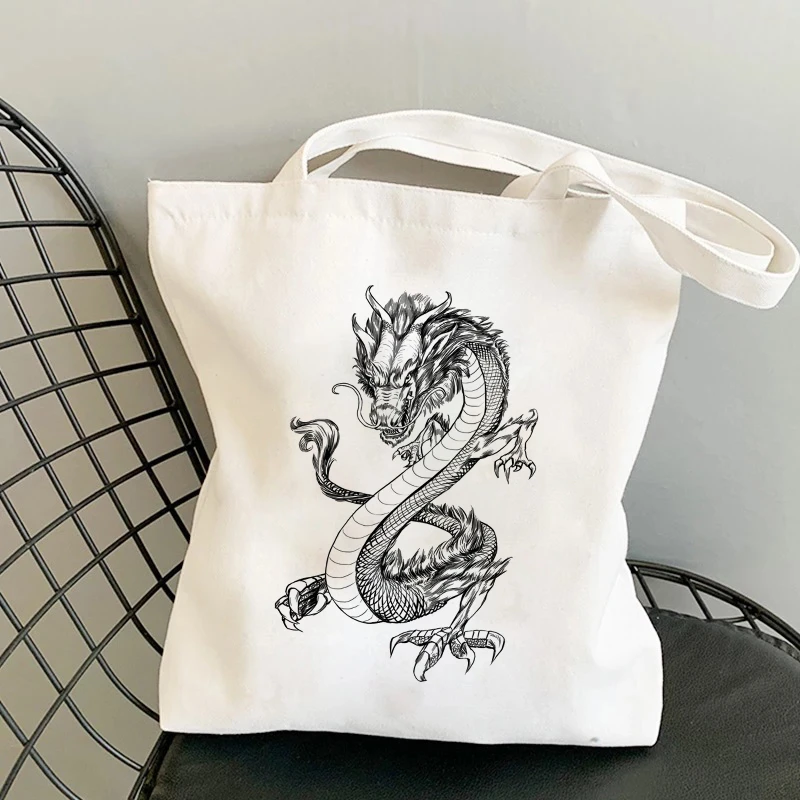 Сумка-тоут с принтом дракона в китайском стиле, повседневная Холщов...