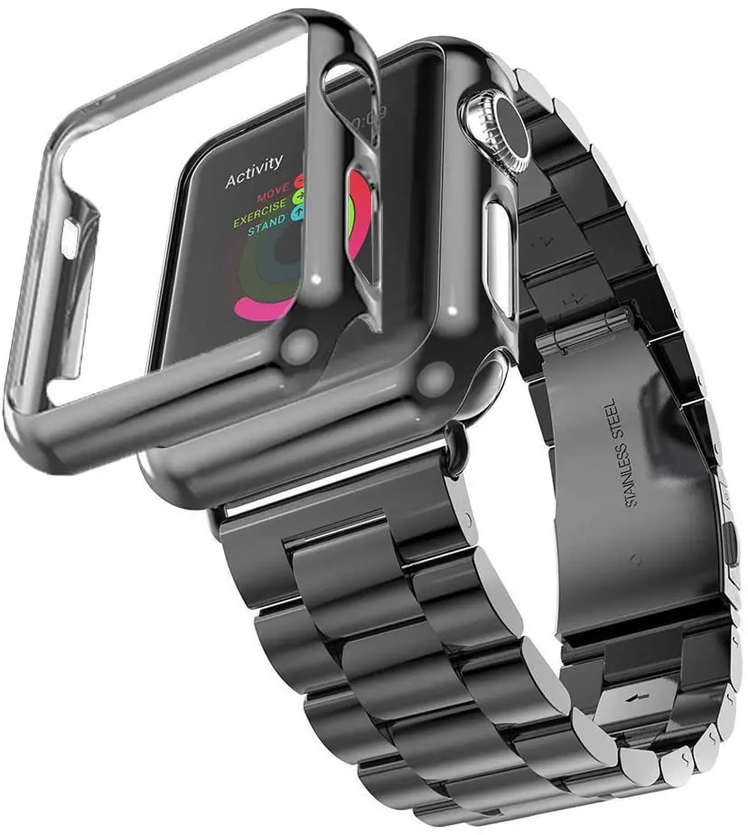 Ремешок из нержавеющей стали для Apple Watch Band Series 1234, с адаптером, чехол для iWatch 4044 мм