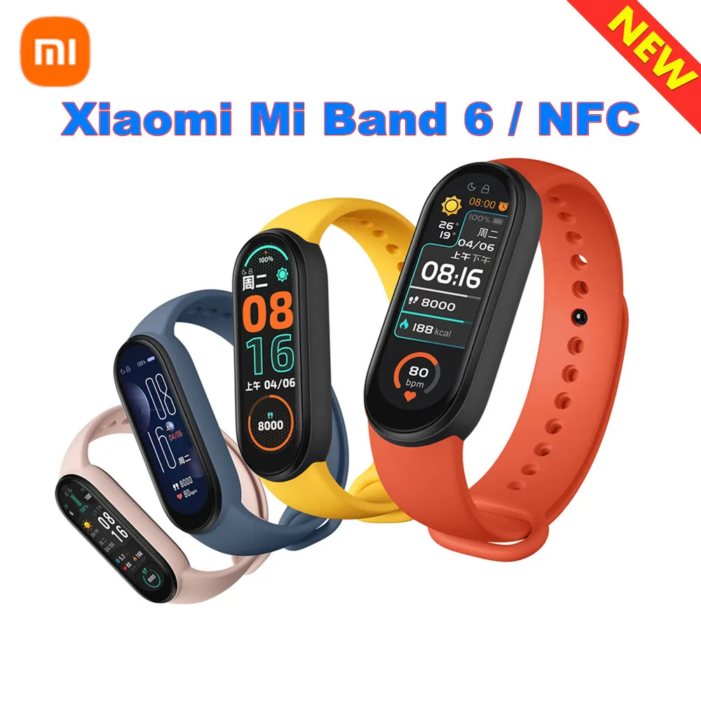 Оригинальный Смарт-браслет Xiaomi Mi Band 6, 1,56 дюйма, AMOLED экран, кислород в крови, фитнес-трекер, спортивный браслет, пульсометр для сна, смарт-браслет