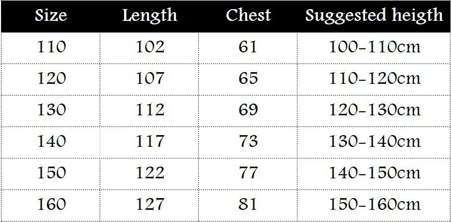 Fit for height110cm,120cm,130cm,140cm,150cm,160cm