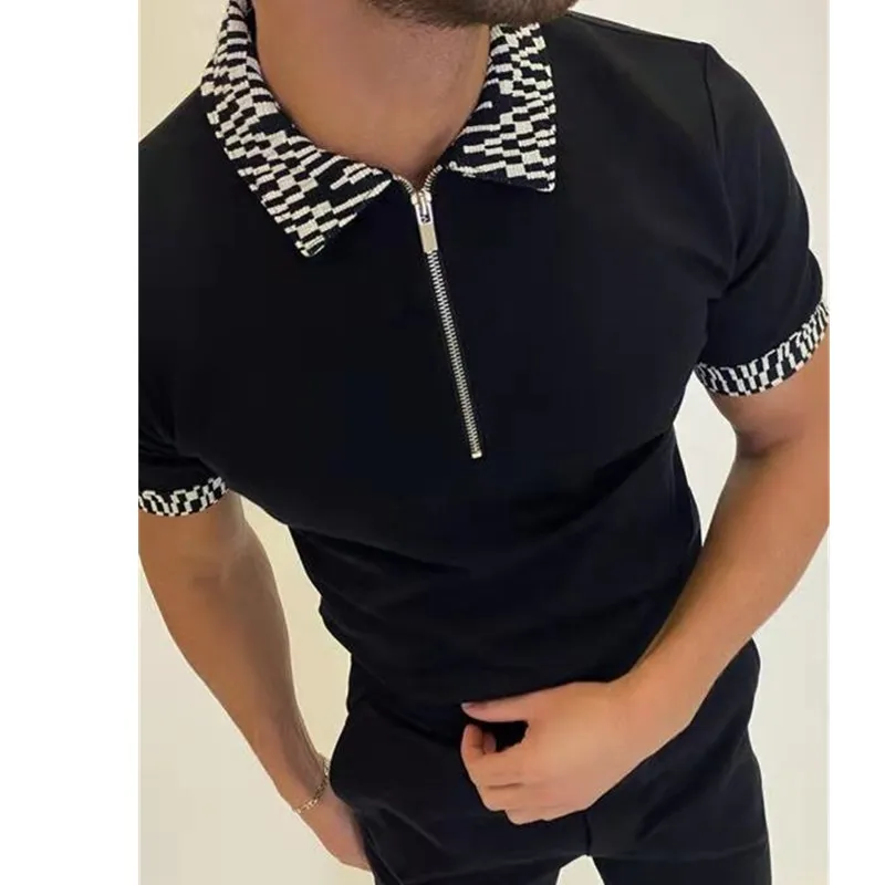 Мужская Повседневная рубашка-поло на молнии, с коротким рукавом и отложным воротником