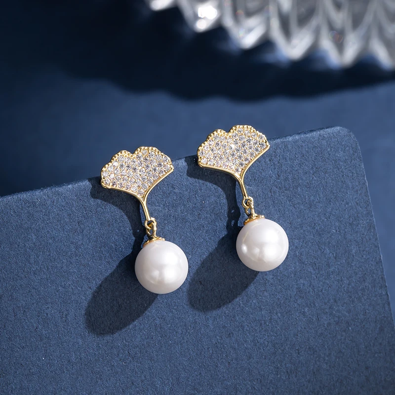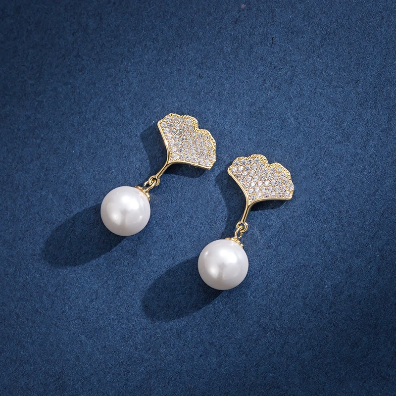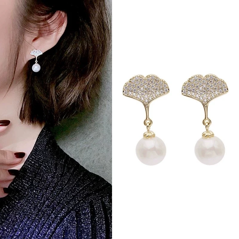 Корейские массивные серьги-гвоздики с кристаллами гинкго и листьями, жемчужные серьги для женщин, новый тренд, крутые модные ювелирные изделия Oorbellen Brincos