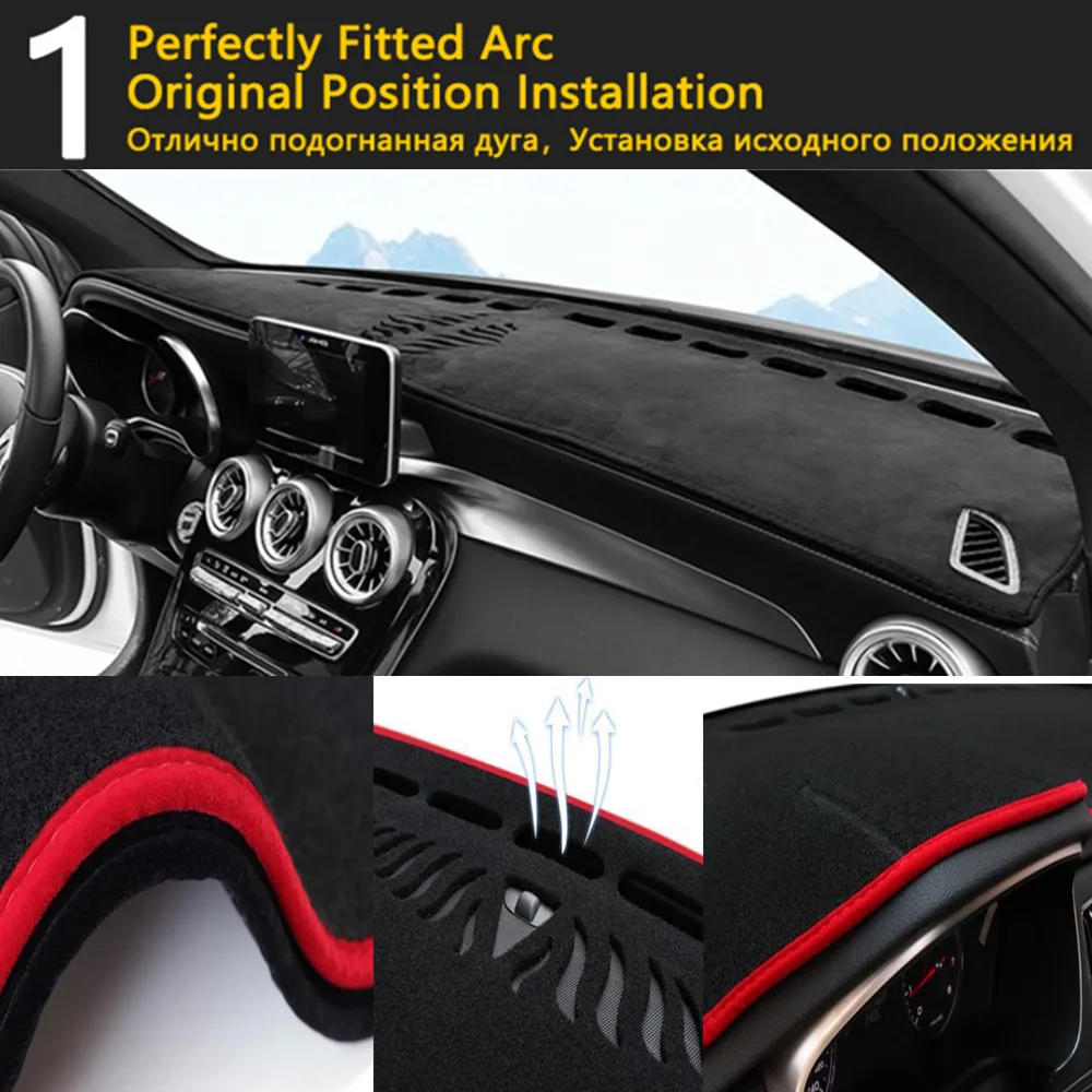 Подходит для контура приборной панели, не садится, выцветание или деформация защищают приборную панель от УФ-повреждений устраняют растрескивание уменьшают блики Высококачественная полиэфирная Автомобильная ткань дыхание для рассеивания тепла большие вентиляционные отверстия, чтобы избежать ограничения воздушного потока тумана
