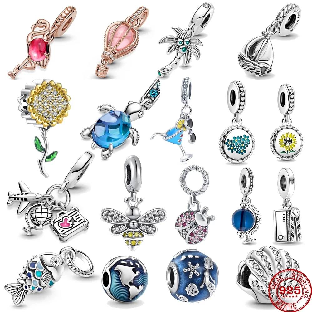 2021 новая масштабированная раковина для рыбы Пальма розовый муранское стекло Фламинго серебро 925 Шарм Бусина Подходит Для оригинальных браслетов Пандора DIY ювелирные изделия