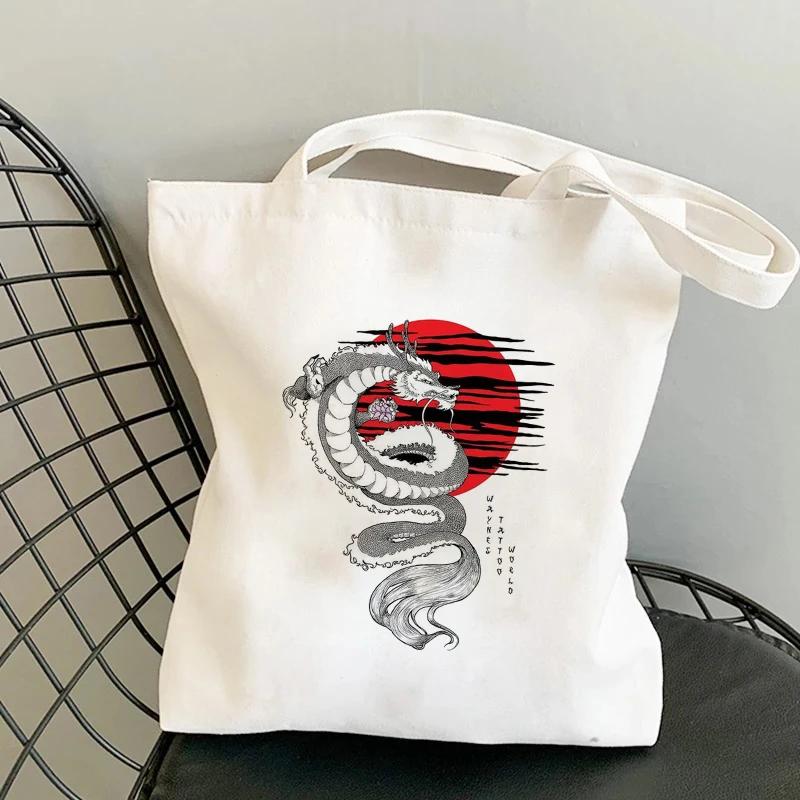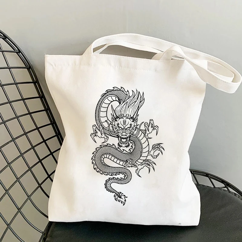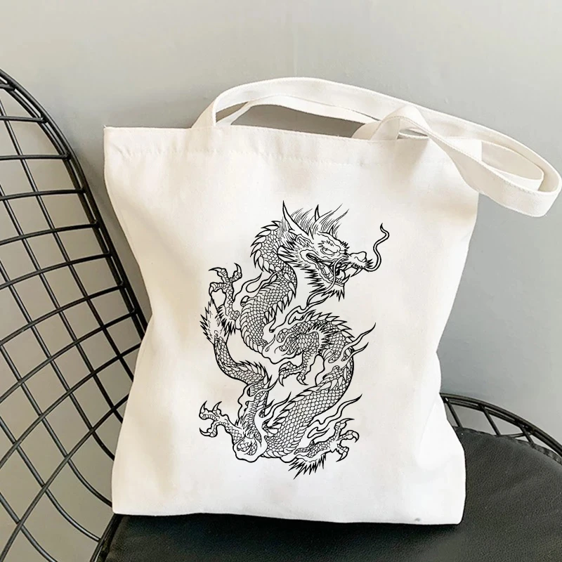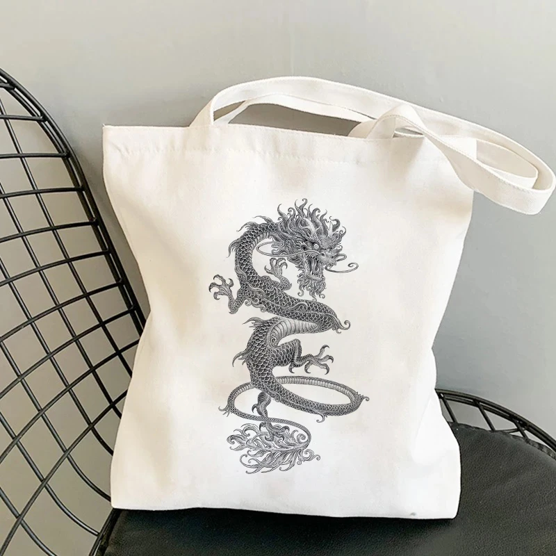 Сумка через плечо, Классическая, с винтажным рисунком дракона, холщовая, большая, женская, в стиле Харадзюку, в готическом стиле