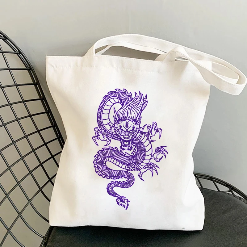 Сумка-тоут с принтом дракона в китайском стиле, повседневная Холщов...