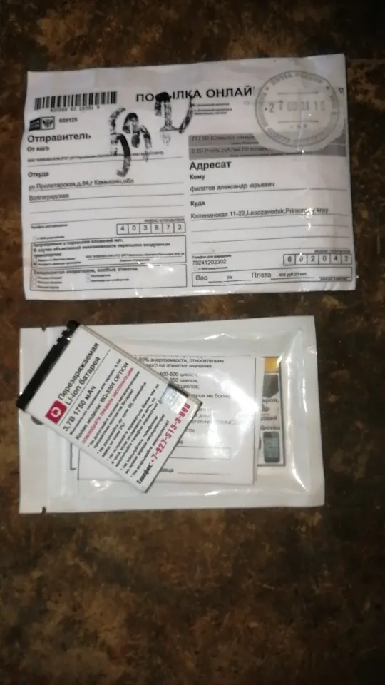 Доставка из Камышина почтой России за 5 дней. Убрали канцелярским ножом ушки на телефоне и батарея встала как родная.