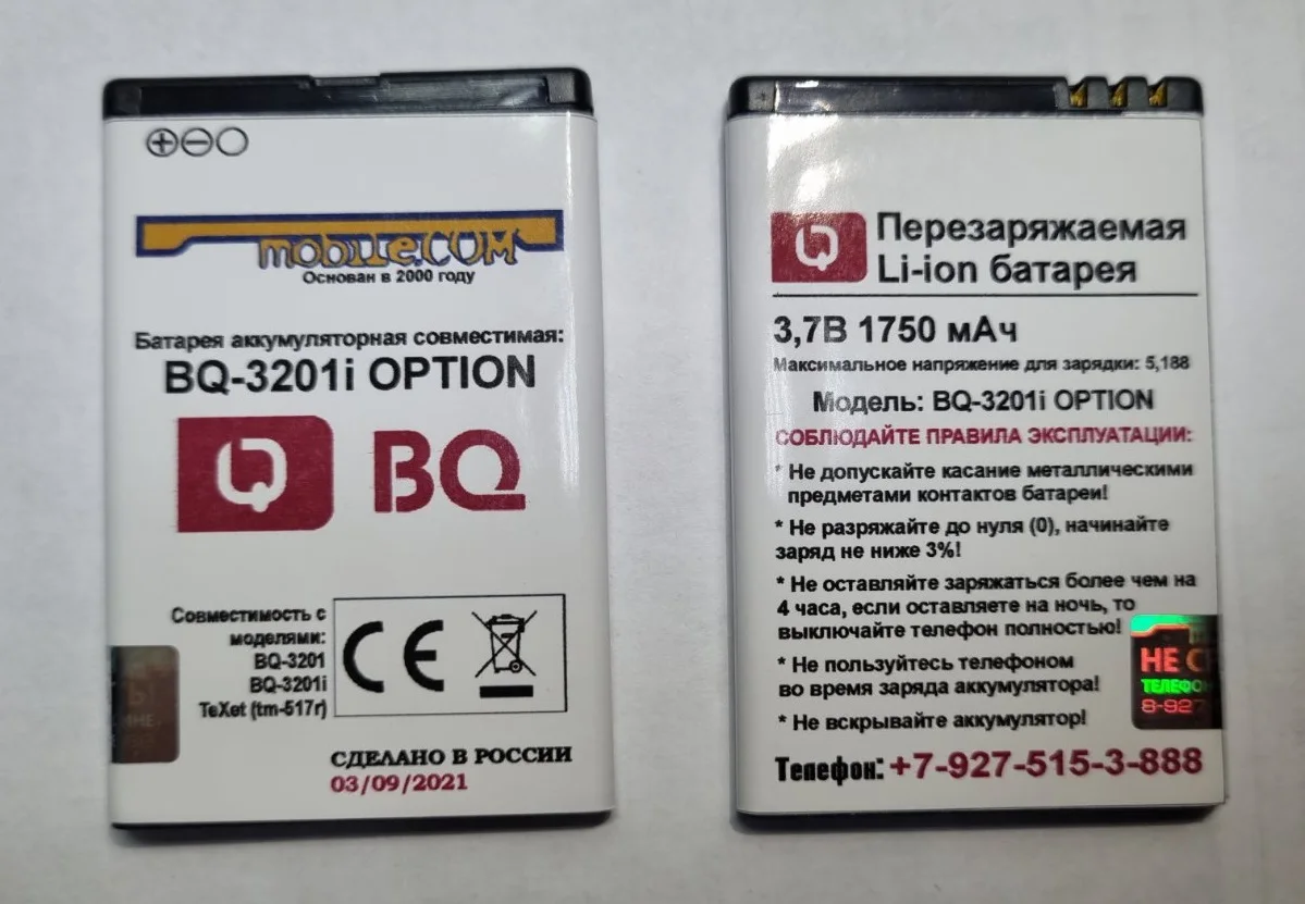 Аккумулятор BQ 3201i OPTION, совместимый с BQ-3201 OPTION, Texet (TM-517R) 1750mAh
