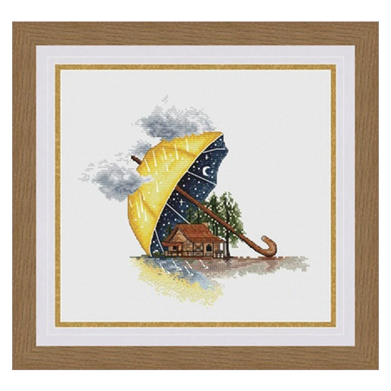 Золотая коллекция, Набор для вышивки крестиком, дом под зонтом, каюта, деревня, дождь