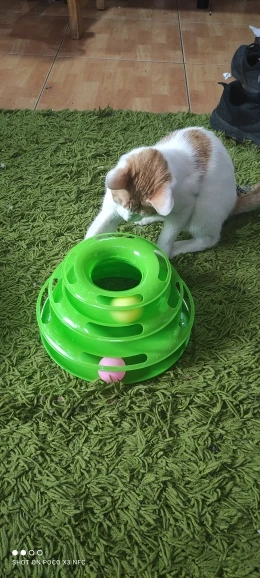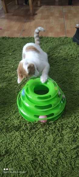 Кошка не играет, я думаю если в детстве не играла с мячиком, то в эту игру не будет