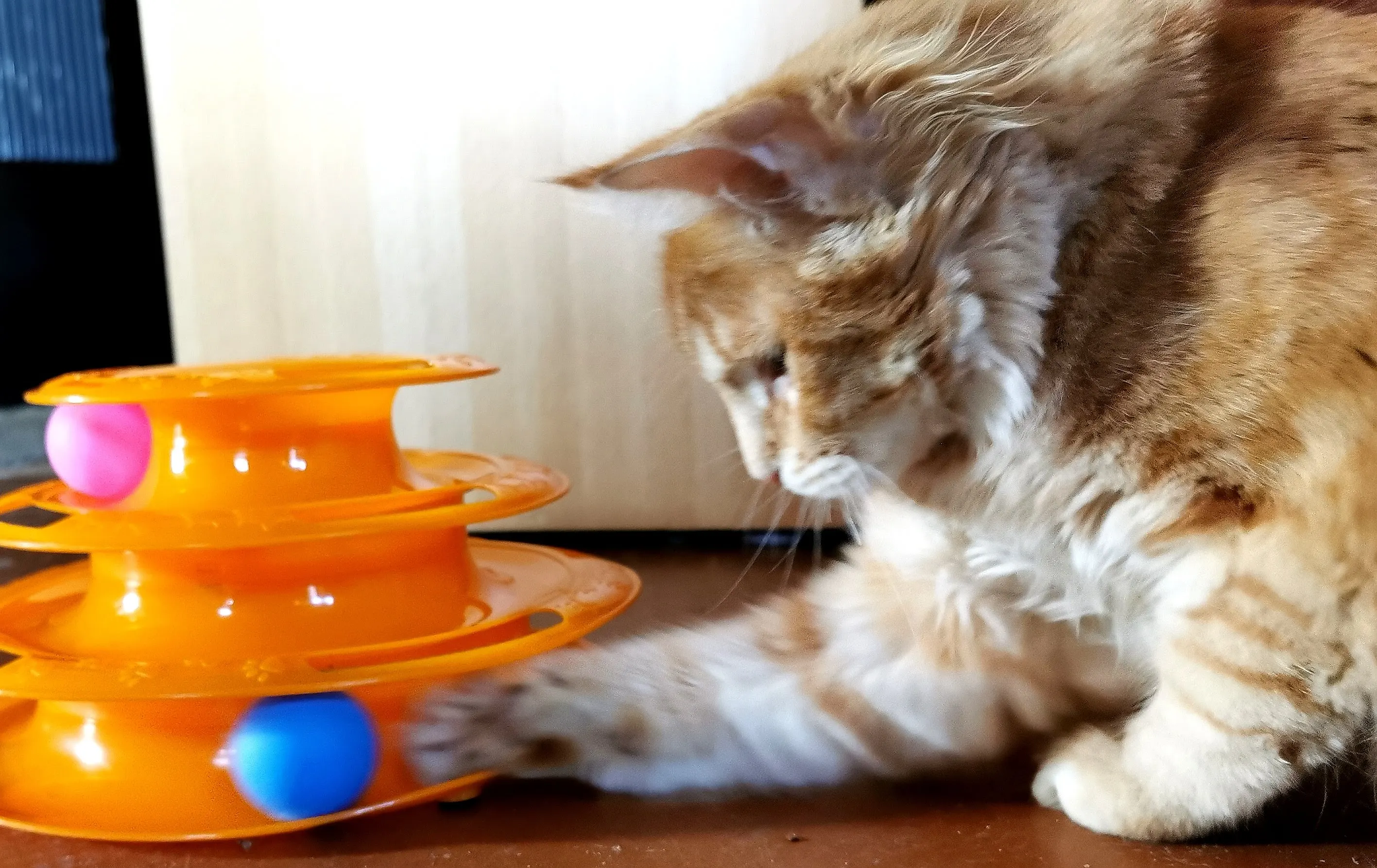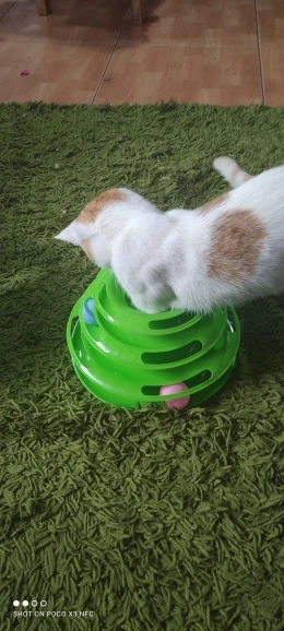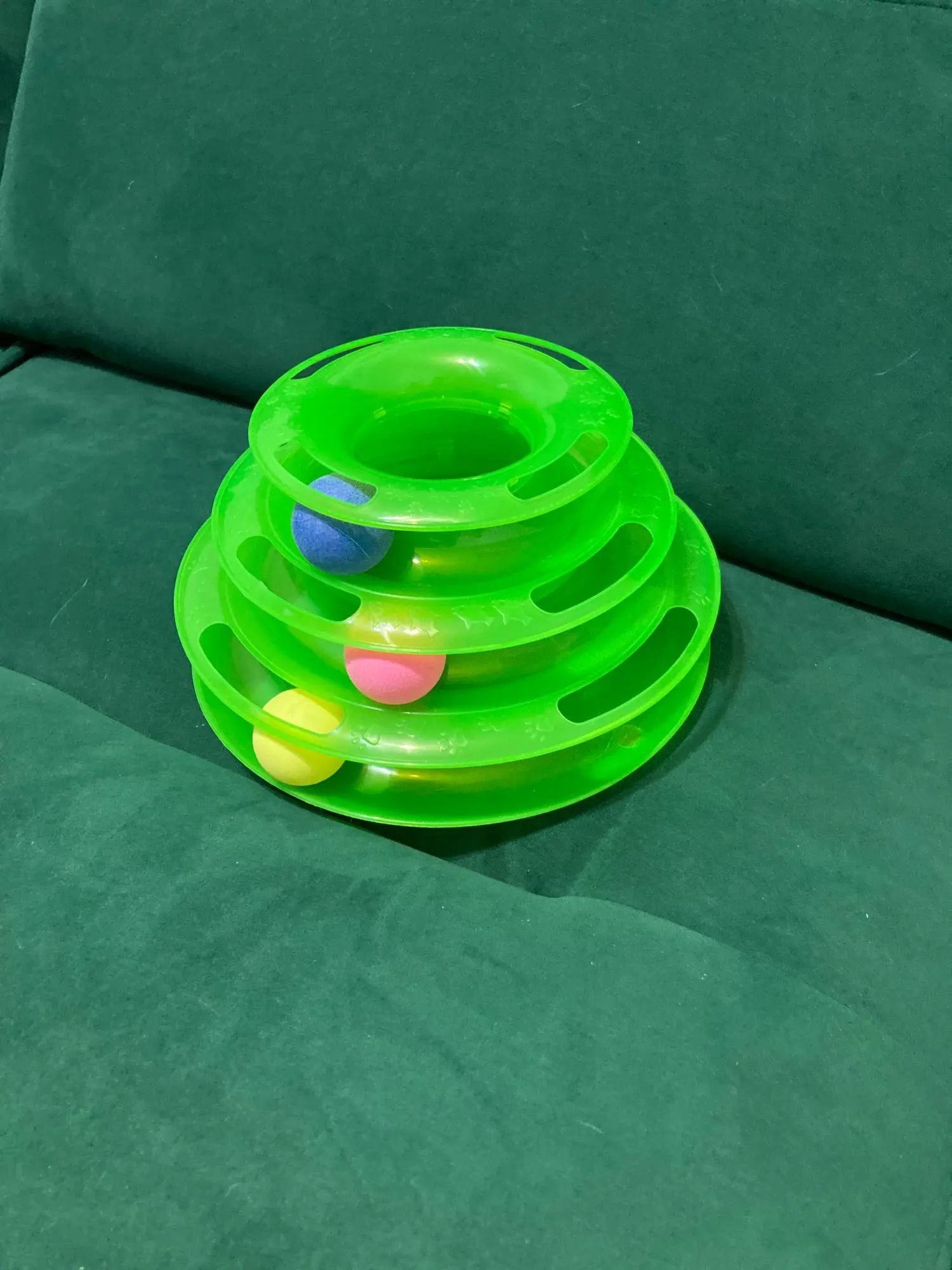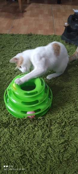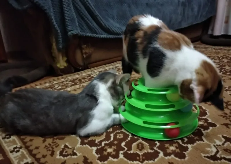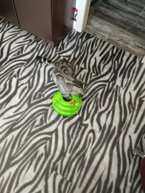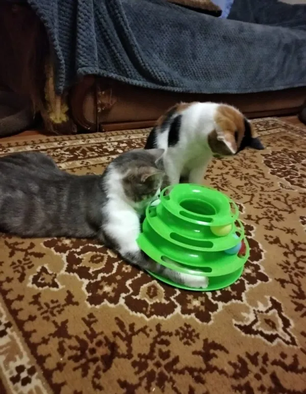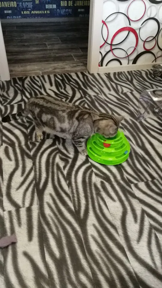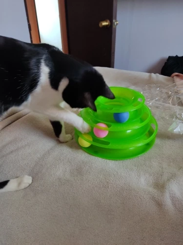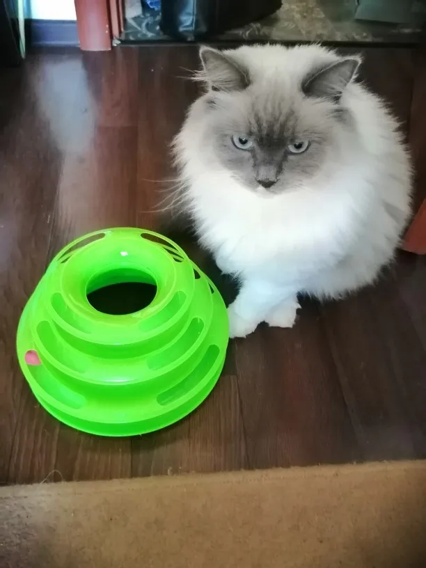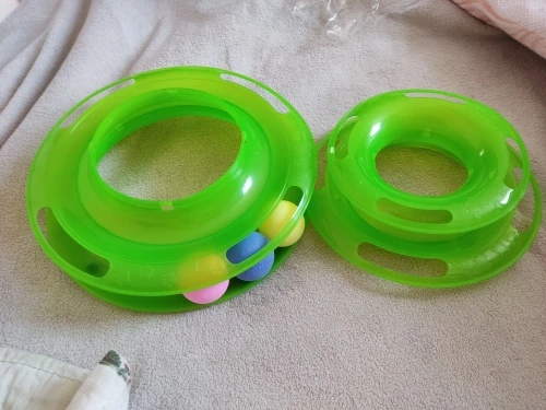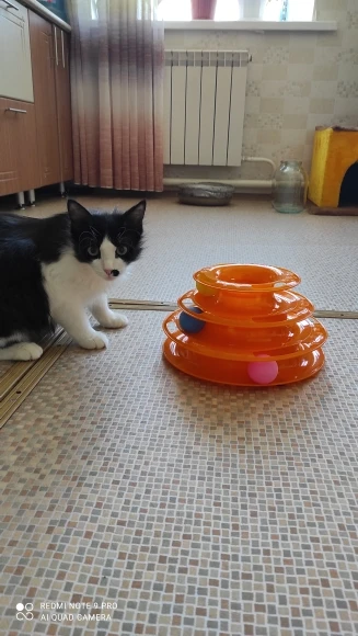 Товар хороший. Шарики внутри скользят не так свободно как хотелось, забивается шерсть, периодически чищю. Котёнок играет.