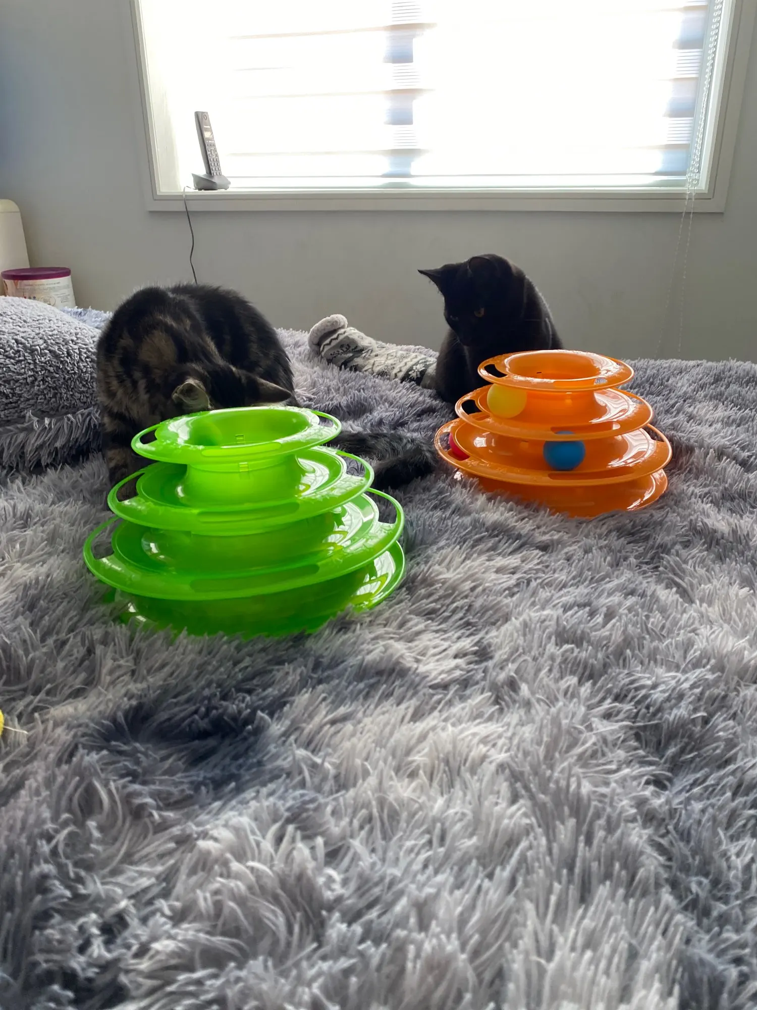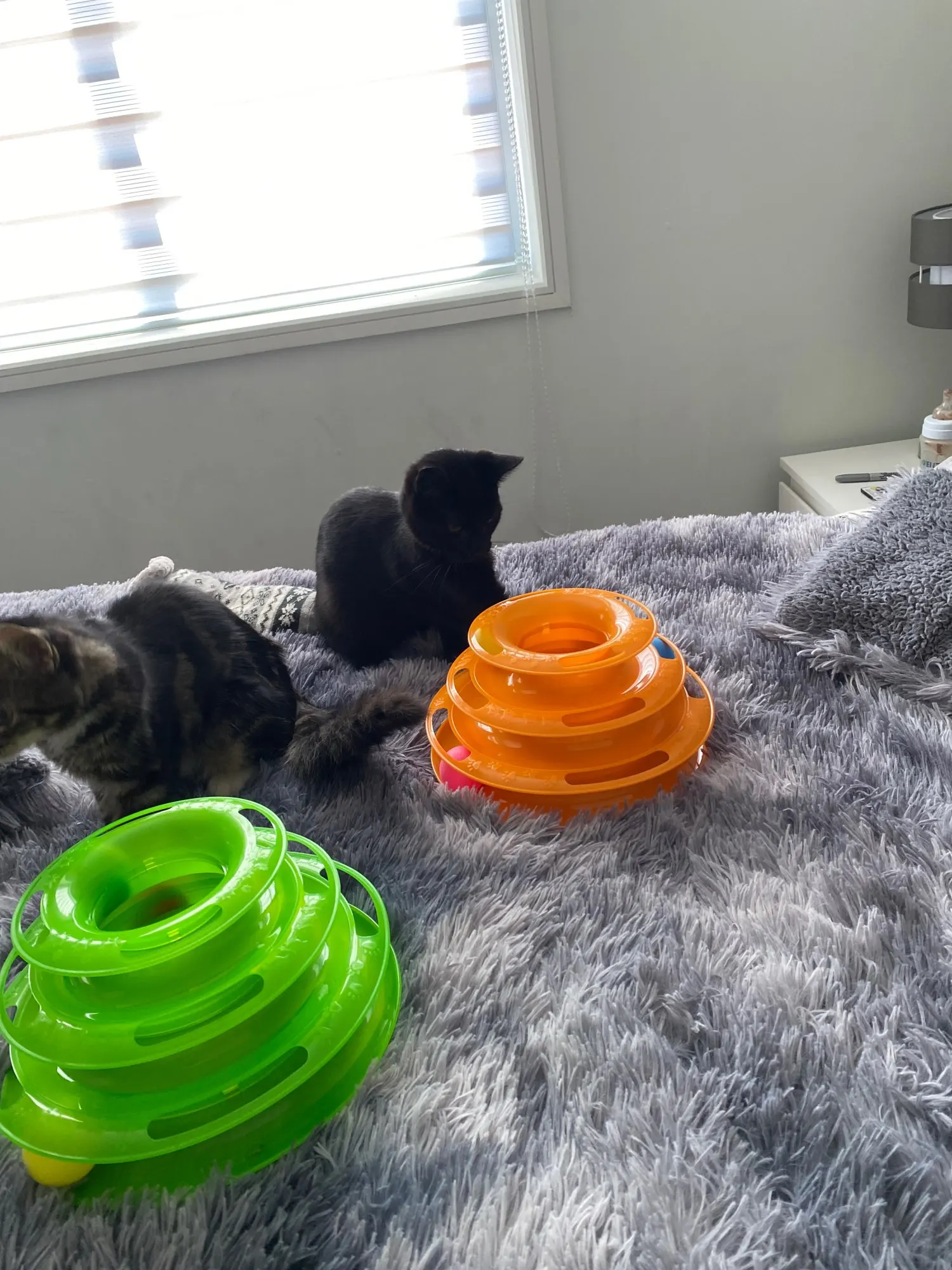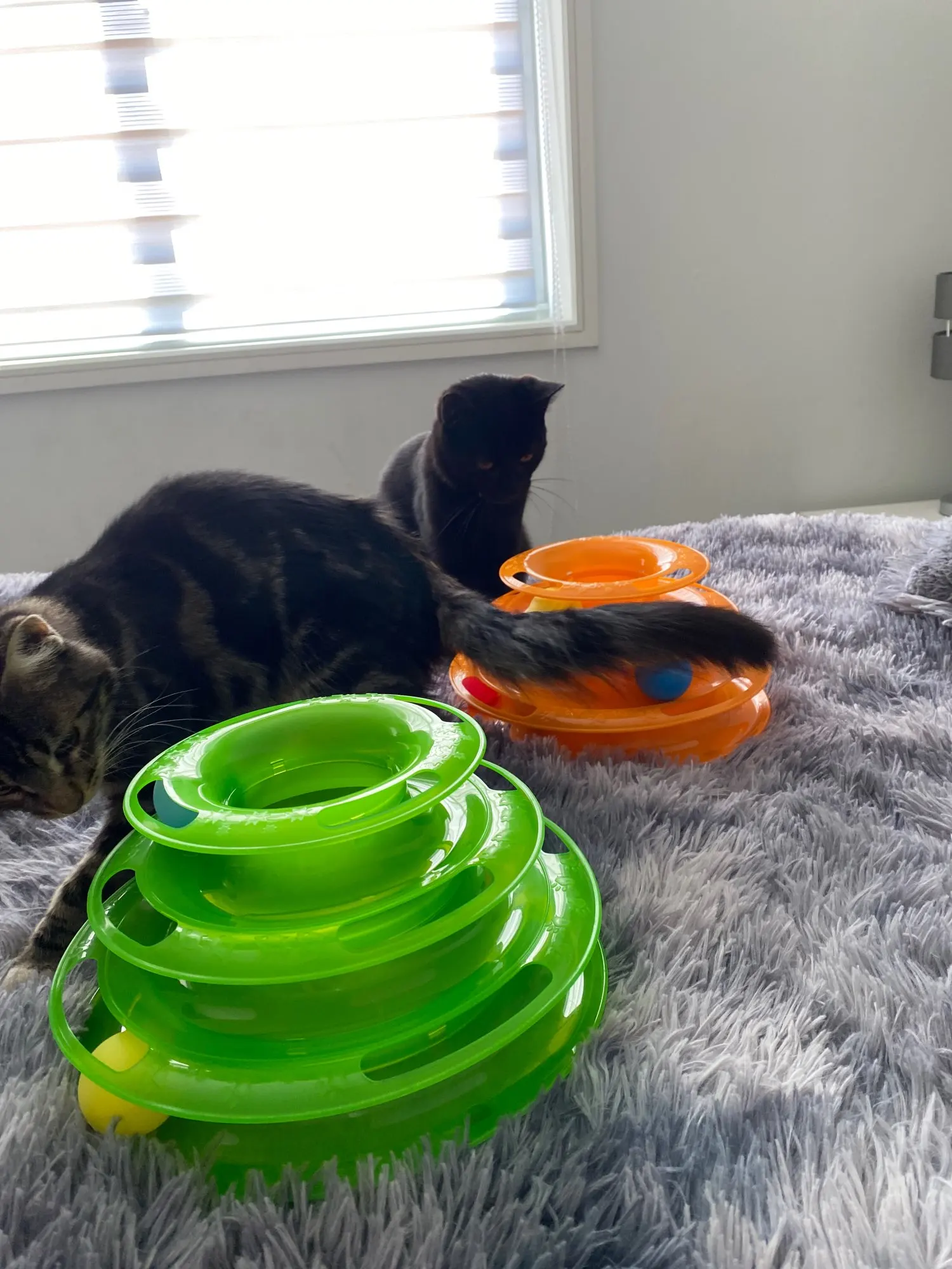 2 флакона игрушки были погружены в нижнюю часть. После установки и демонстрации кошке, как он работает. Кошка использовала его и отличается. Мне нравится игрушка tholis, так как она без шума. Цвета и материалы, как описано продавцом. I ricomend этот магазин для любителей домашних животных. Заказ прибыл очень быстро.