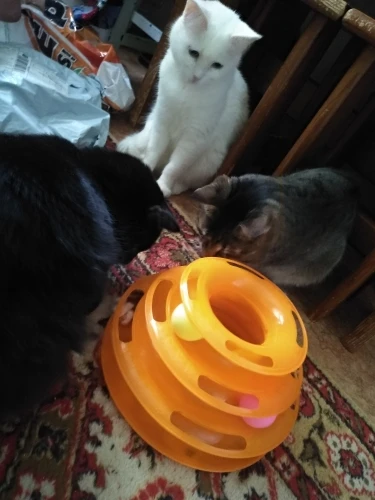 Отправка и доставка быстрые. Всё пришло целое,упаковано хорошо.Игрушка замечательная. Кошкам понравилась. Спасибо продавцу.