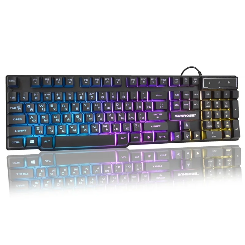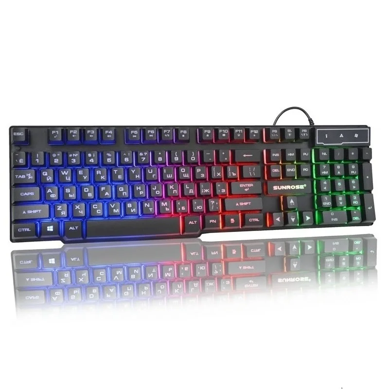 Русская клавиатура RGB подсветка освещения 104 клавиши раскладка черная проводная USB клавиатура для настольного ноутбука ПКХарактеристики клавиатуры: