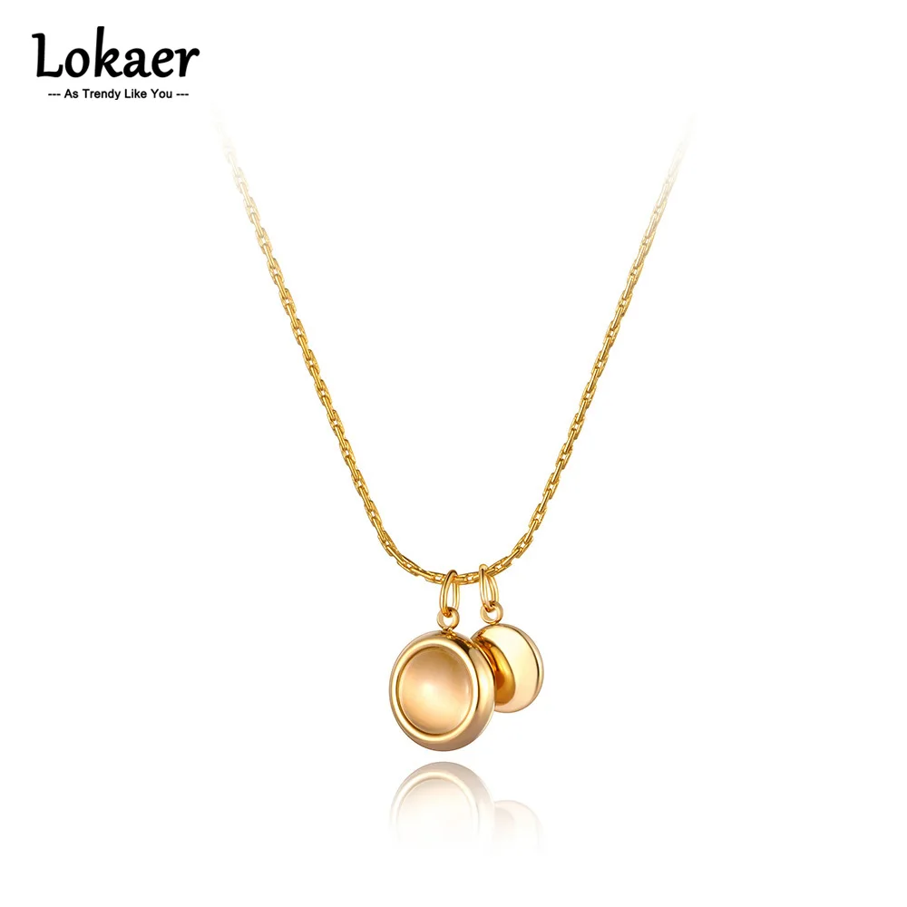 Ожерелье Lokaer из титановой нержавеющей стали с круглым опалом, ожерелье-чокер для женщин и девушек, модное ожерелье с подвеской Стразы N21154